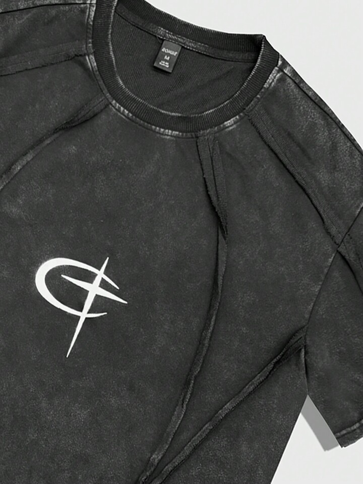 Grunge Punk Men's KPOP Grunge Crew Neck Short Sleeve Printed Casual T-Shirt, Minimalist Daily Wear, 2000s Style