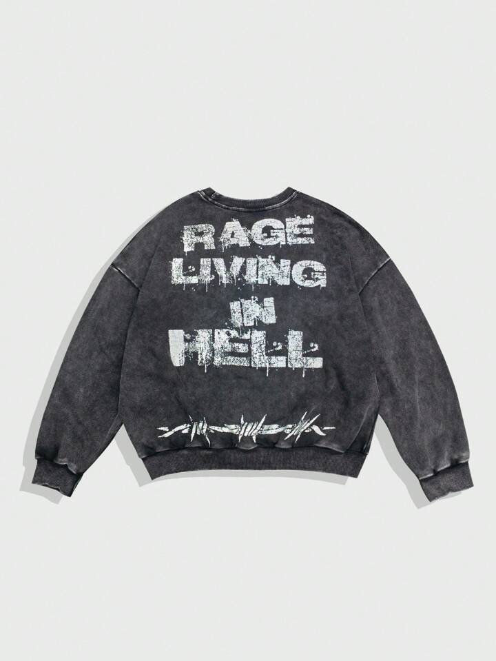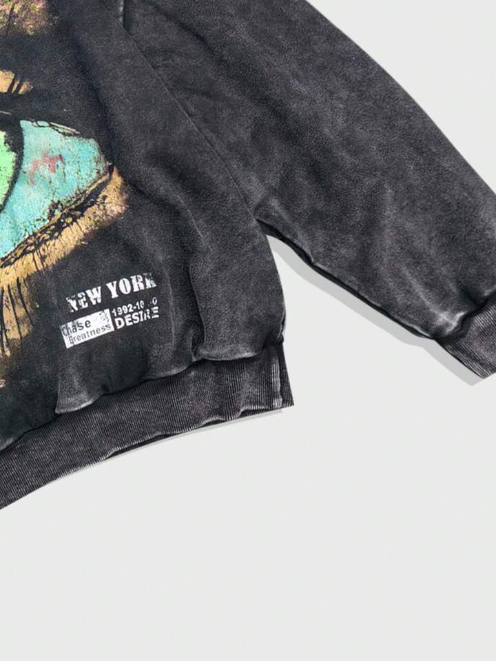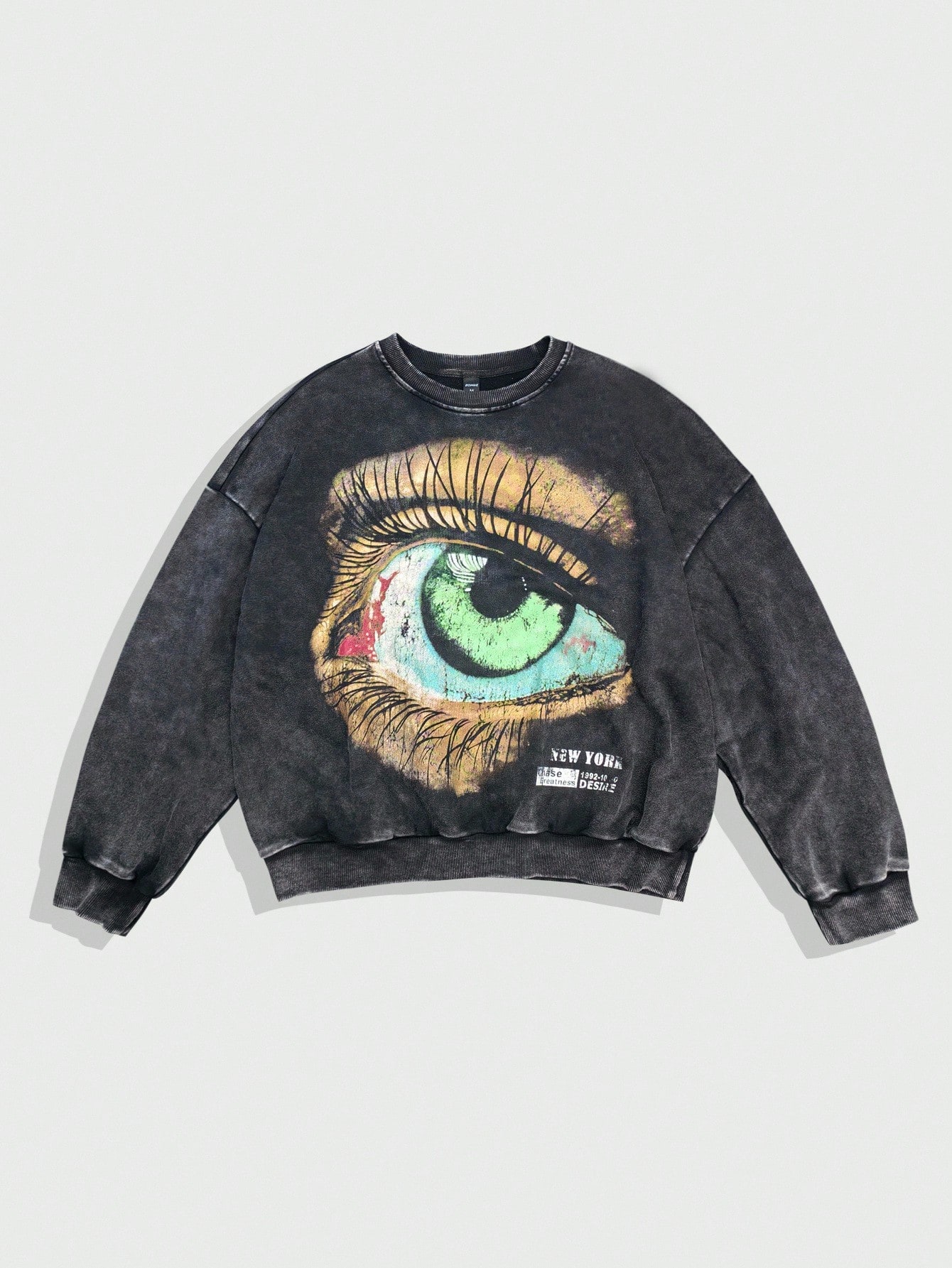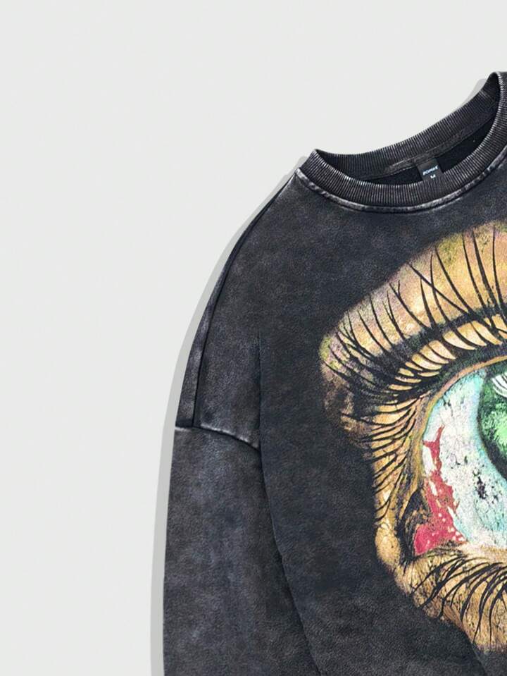 Grunge Punk Men's Letter & Eye Print Crew Neck Long Sleeve Casual Pullover Sweatshirt