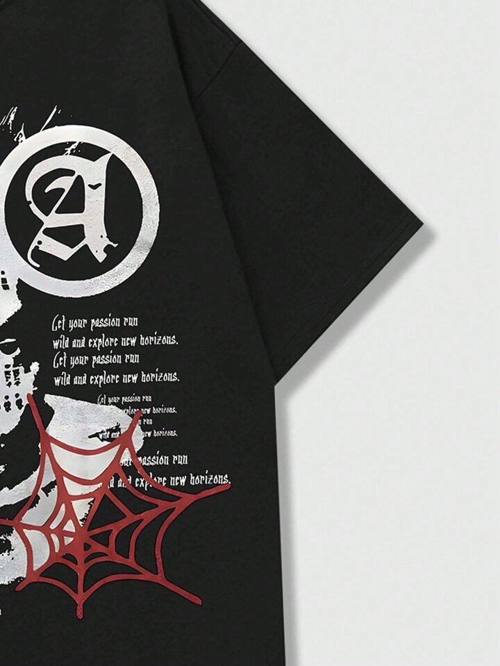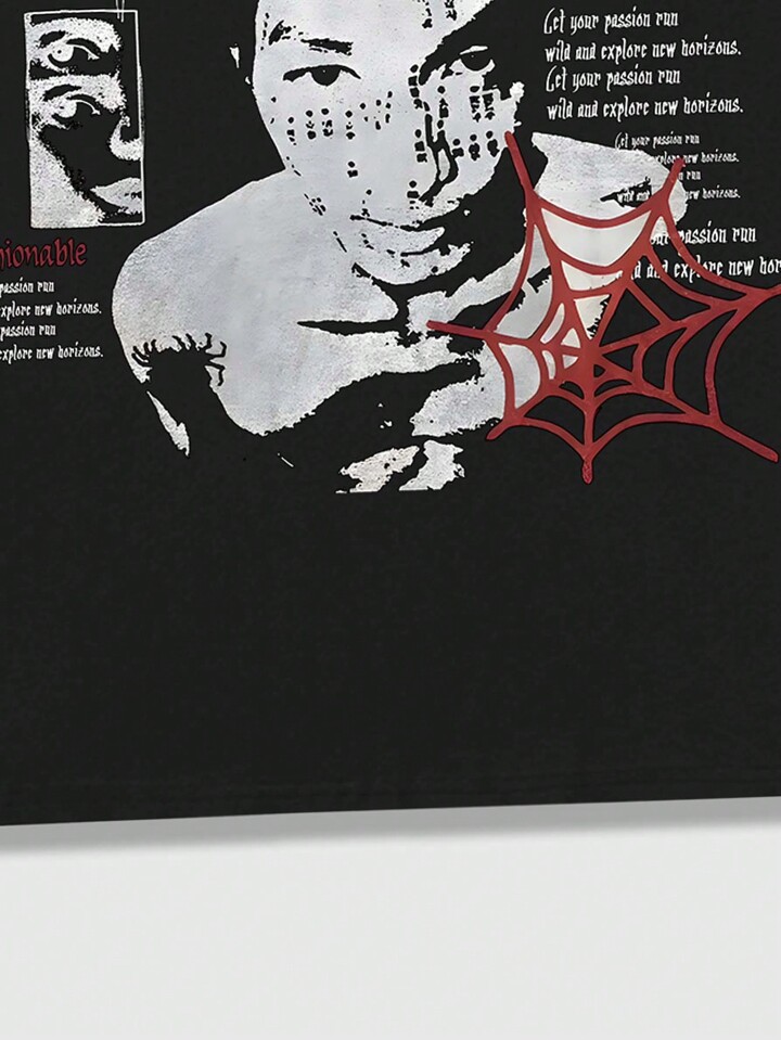 Grunge Punk Men's Portrait And Slogan Print Short Sleeve T-Shirt, School