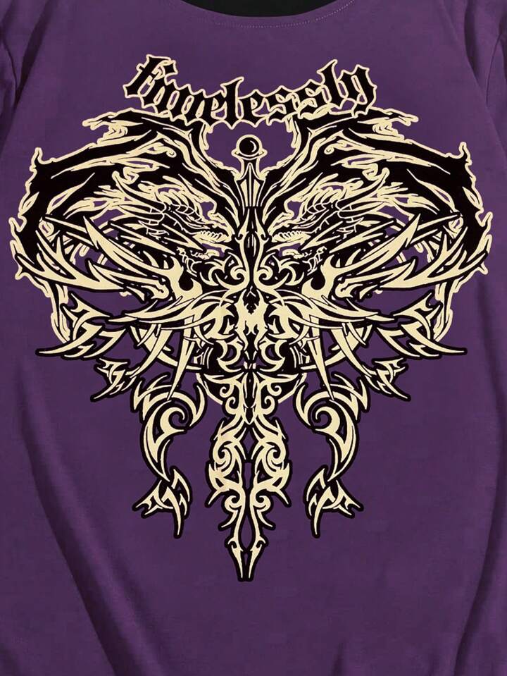 Grunge Punk Men's Solid Color Patchwork Round Neck Short Sleeve Printed Casual Top