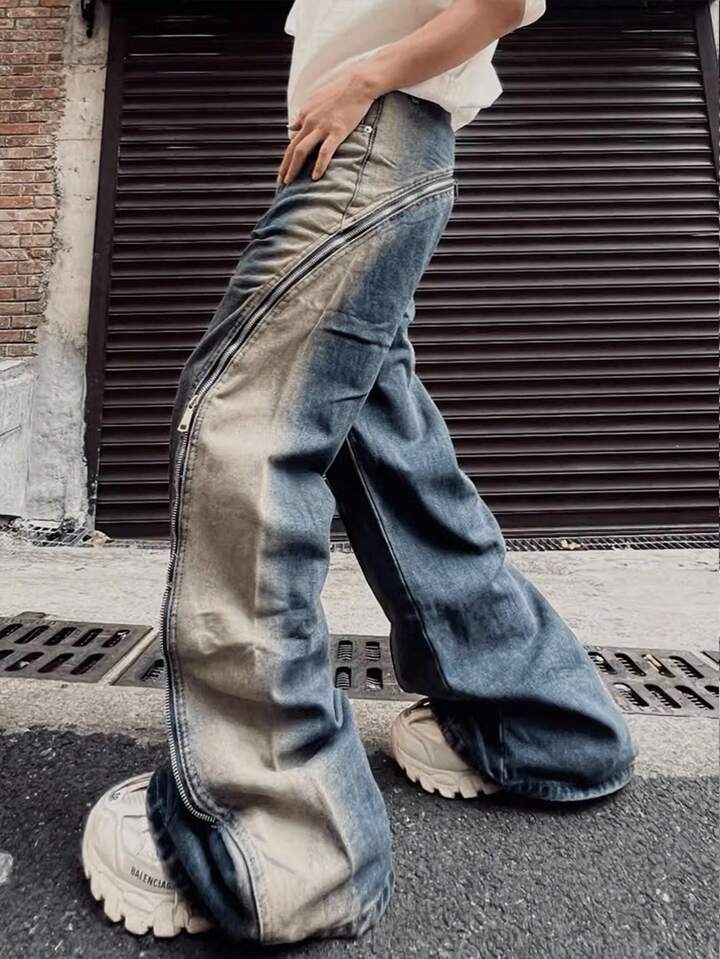 Grunge Punk Men's Street Pocket Flared Casual Versatile Jeans