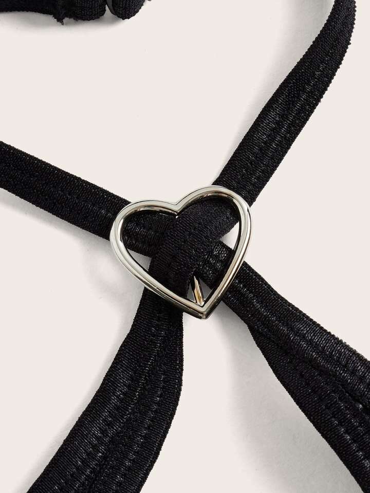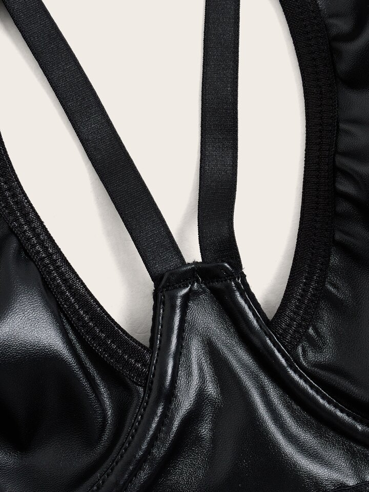 Grunge Punk PU Leather Cut Out Ring Linked Lingerie Set