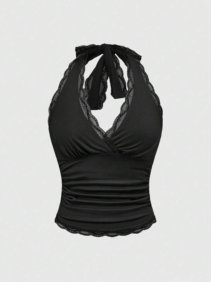 Grunge Punk Plus Size Women Lace Trim Backless Halter Top