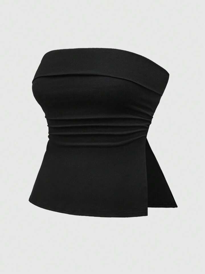 Grunge Punk Plus Size Women's Versatile Sexy Slit Design Tight-Fitting Black Tube Top