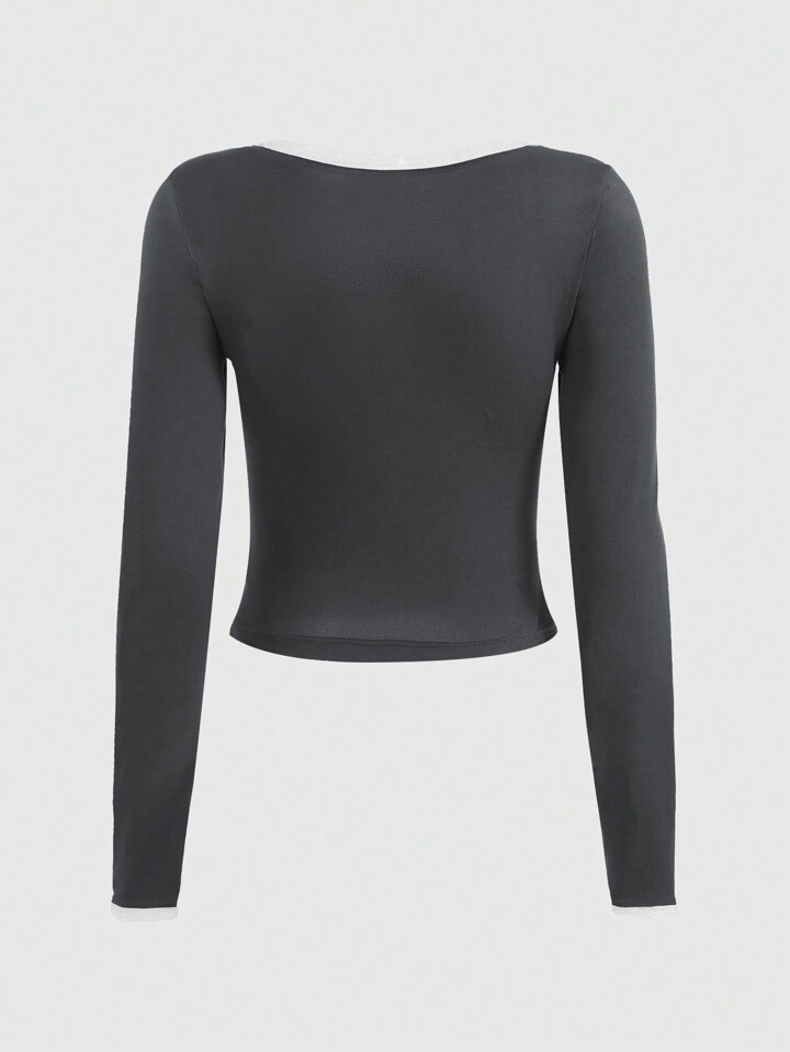 Grunge Punk Plus Size Y2k Minimalist Sexy Leisure Basic Lace Hem Bowknot Bodycon Waist-Cinching T-Shirt