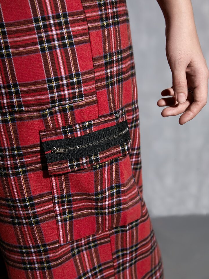 Grunge Punk Plus Tartan Print Flap Pocket Side Cargo Pants