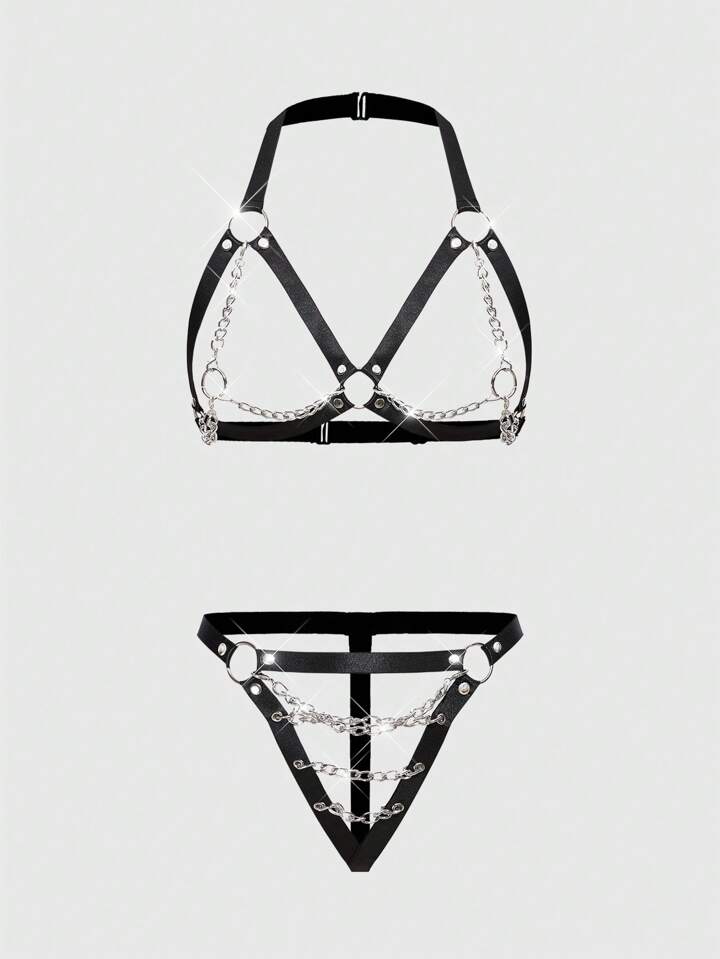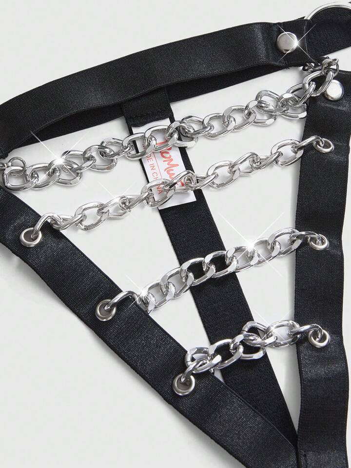 Grunge Punk Punk Rock Music Festival Gothic Metal Chain Triangle Thong Lingerie Set