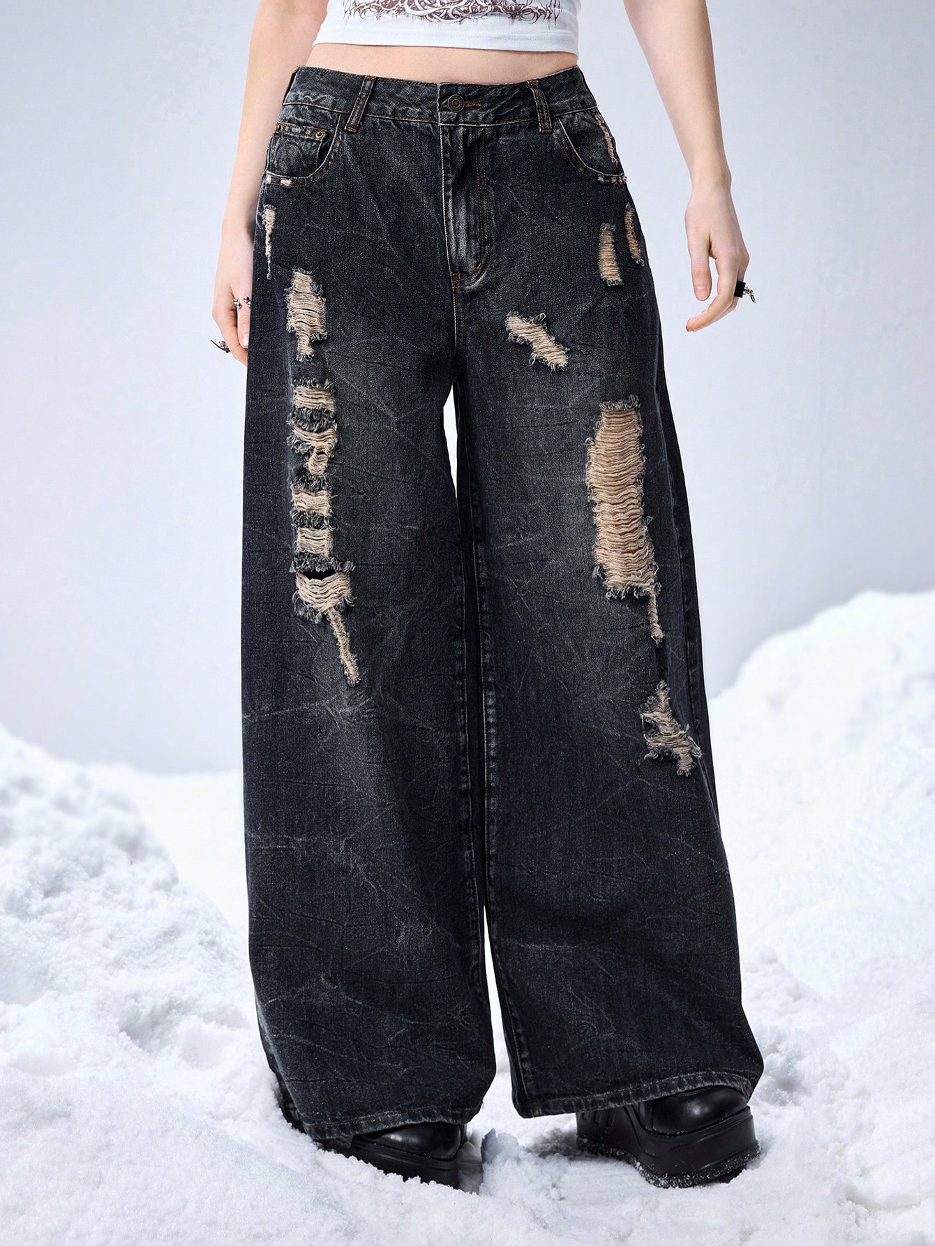 Grunge Punk Relaxed Fit Grunge Vintage Distressed Design Oversized Skull Print Women Jeans