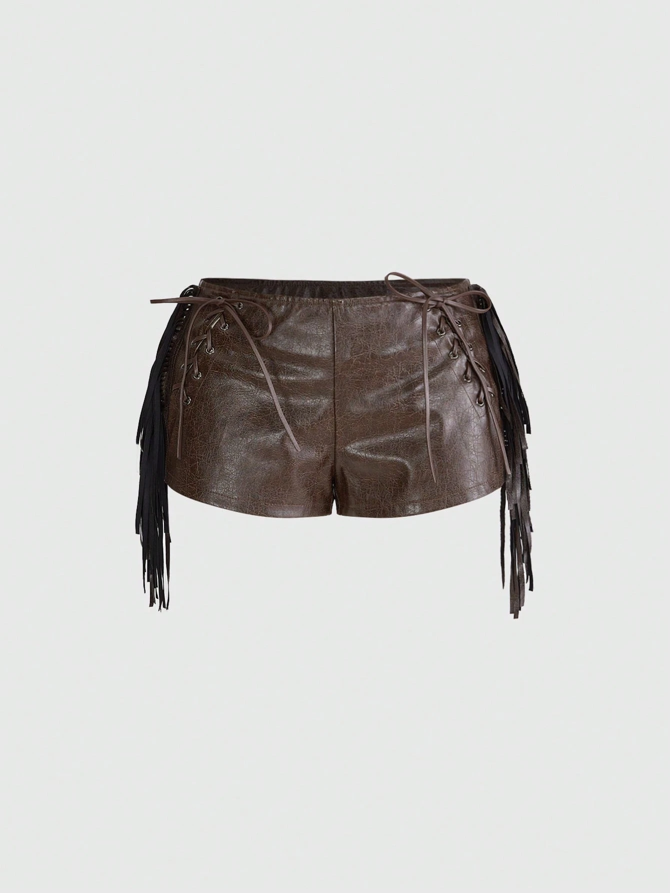 Grunge Punk Retro Music Festival Vacation Fringe PU Bodycon Low Waist Mini Shorts