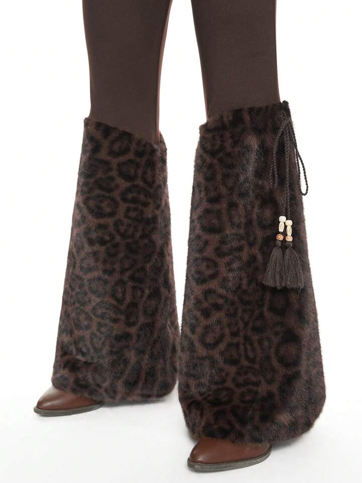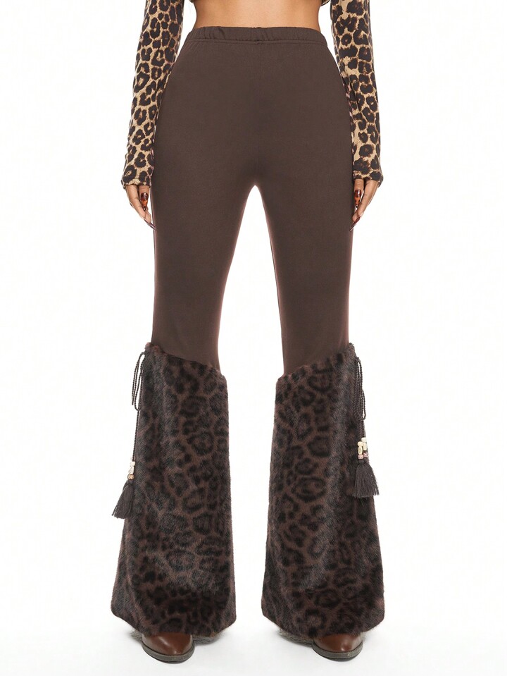 Grunge Punk Retro Subculture Y2K Harajuku E-Girl Leopard Print Fringe Hem Stretchy Flare Pants For Women