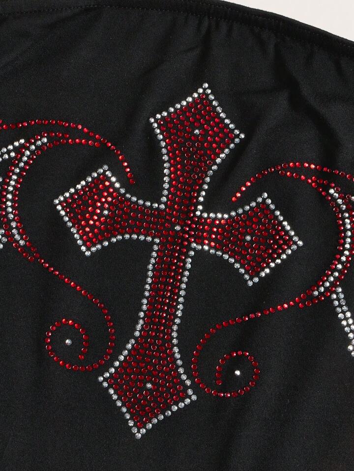 Grunge Punk Rhinestone Cross Pattern Tube Top, School