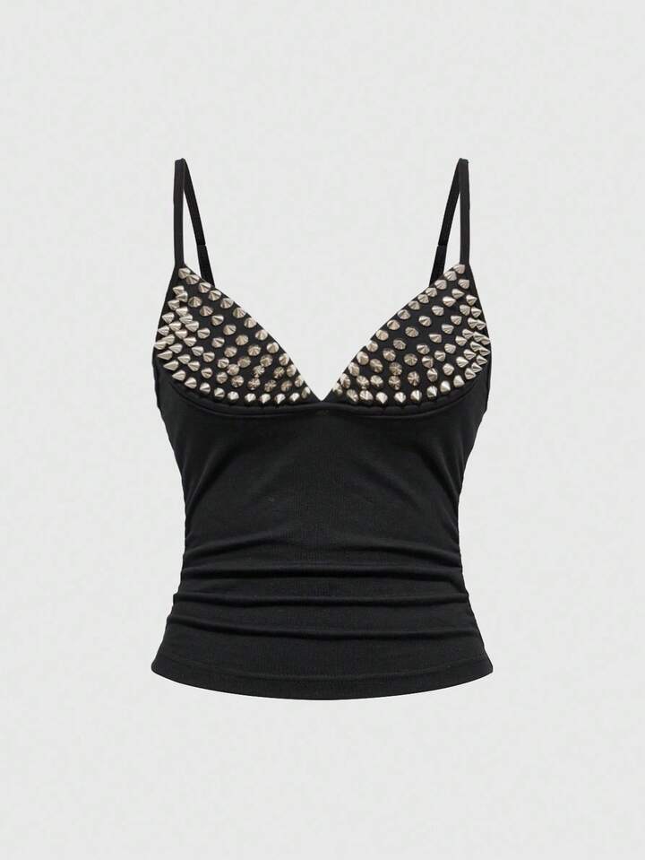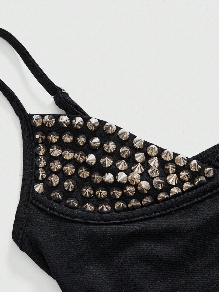 Grunge Punk Sexy Halloween Dark Punk Rivet Patchwork Women Top