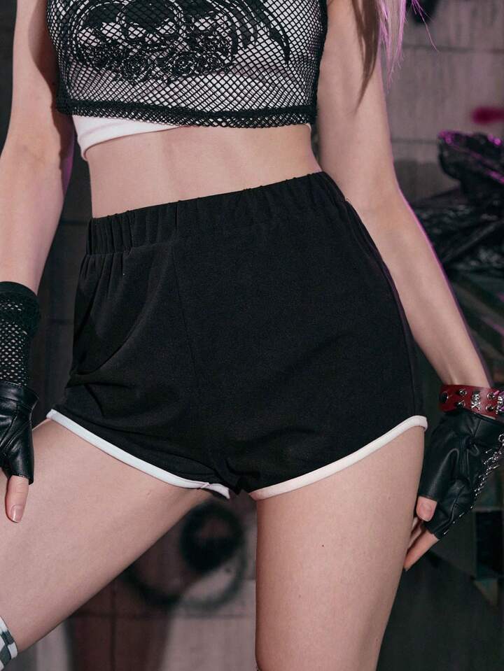 Grunge Punk Skeleton Hand Print Contrast Binding Shorts