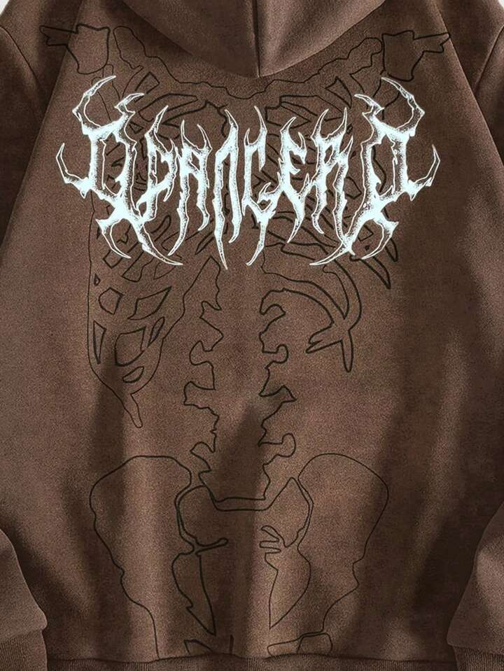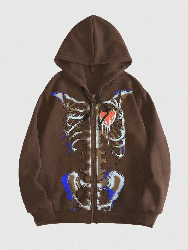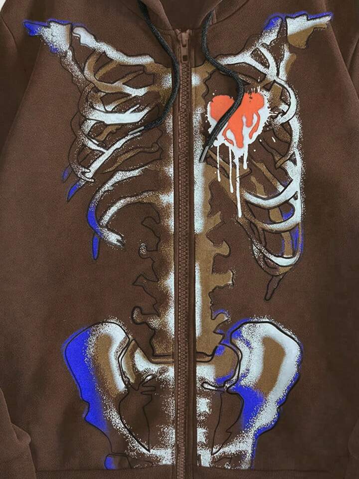 Grunge Punk Skull Print Hoodie Jacket