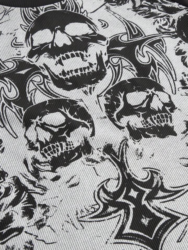 Grunge Punk Skull Print Raglan Sleeve Tee