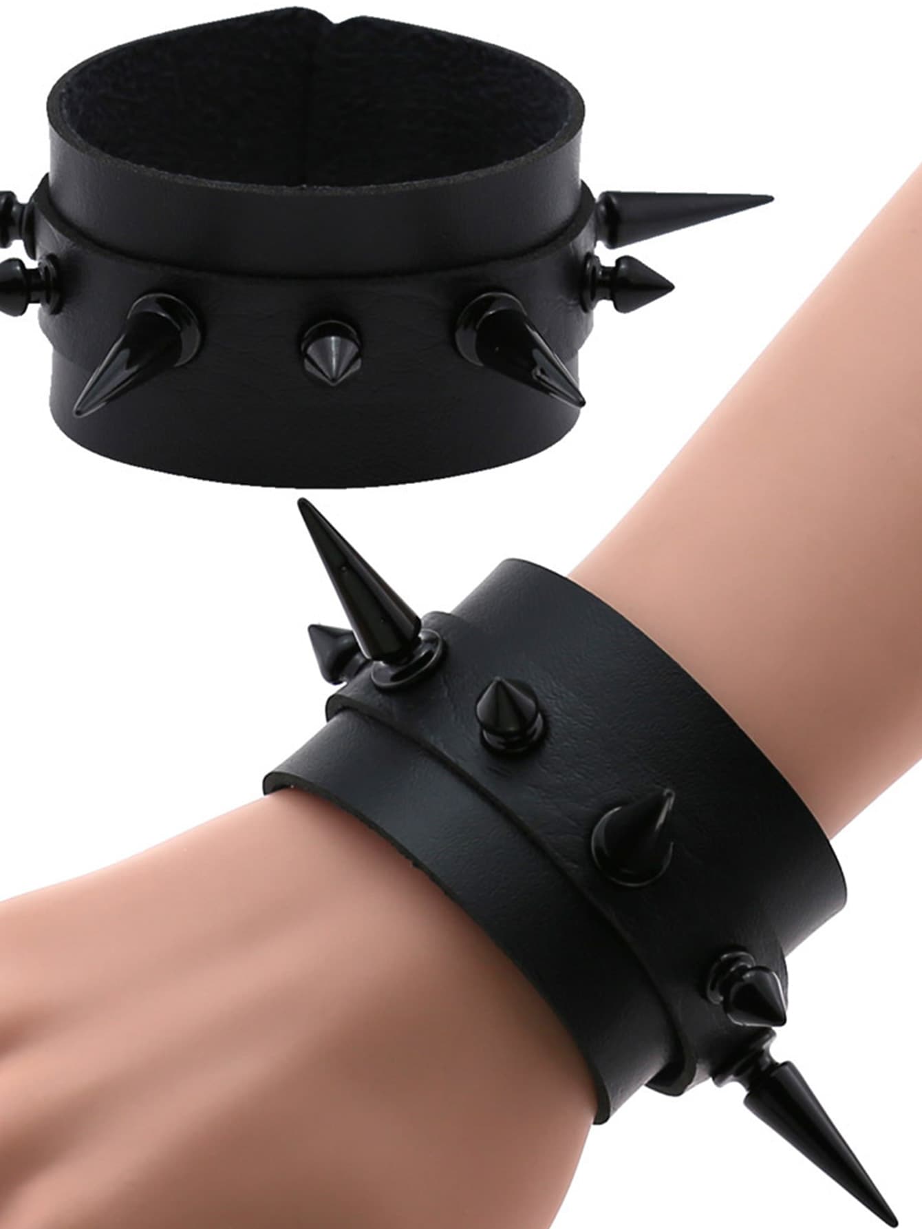 Grunge Punk Solid Spiked Decor Bracelet