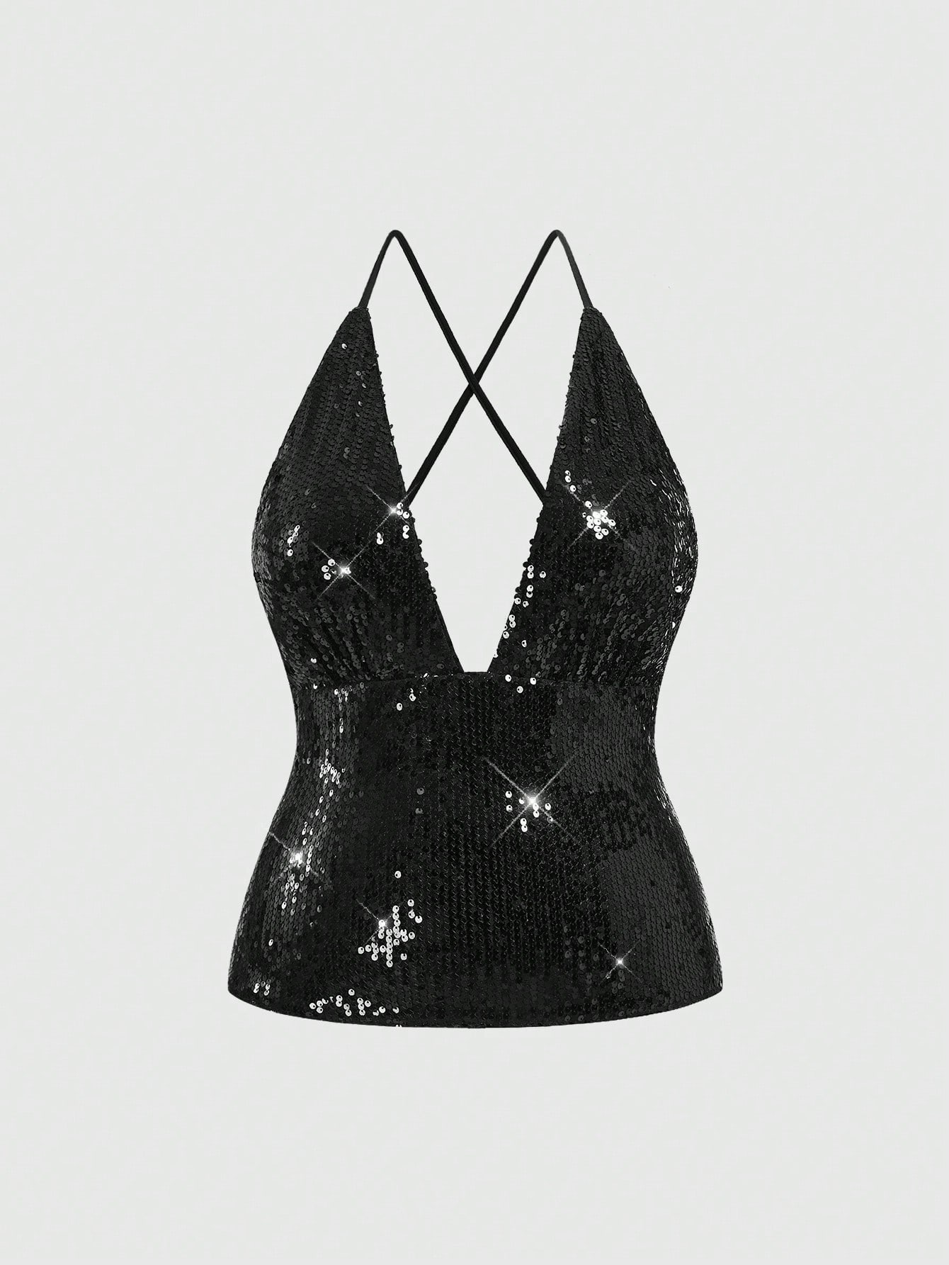 Grunge Punk Spring/Summer 1pc Women's Sequin Decorated Camisole Top, Black Sequin Sleeveless Vest, Plus Size Camisole And Vest Valentine's Day Party