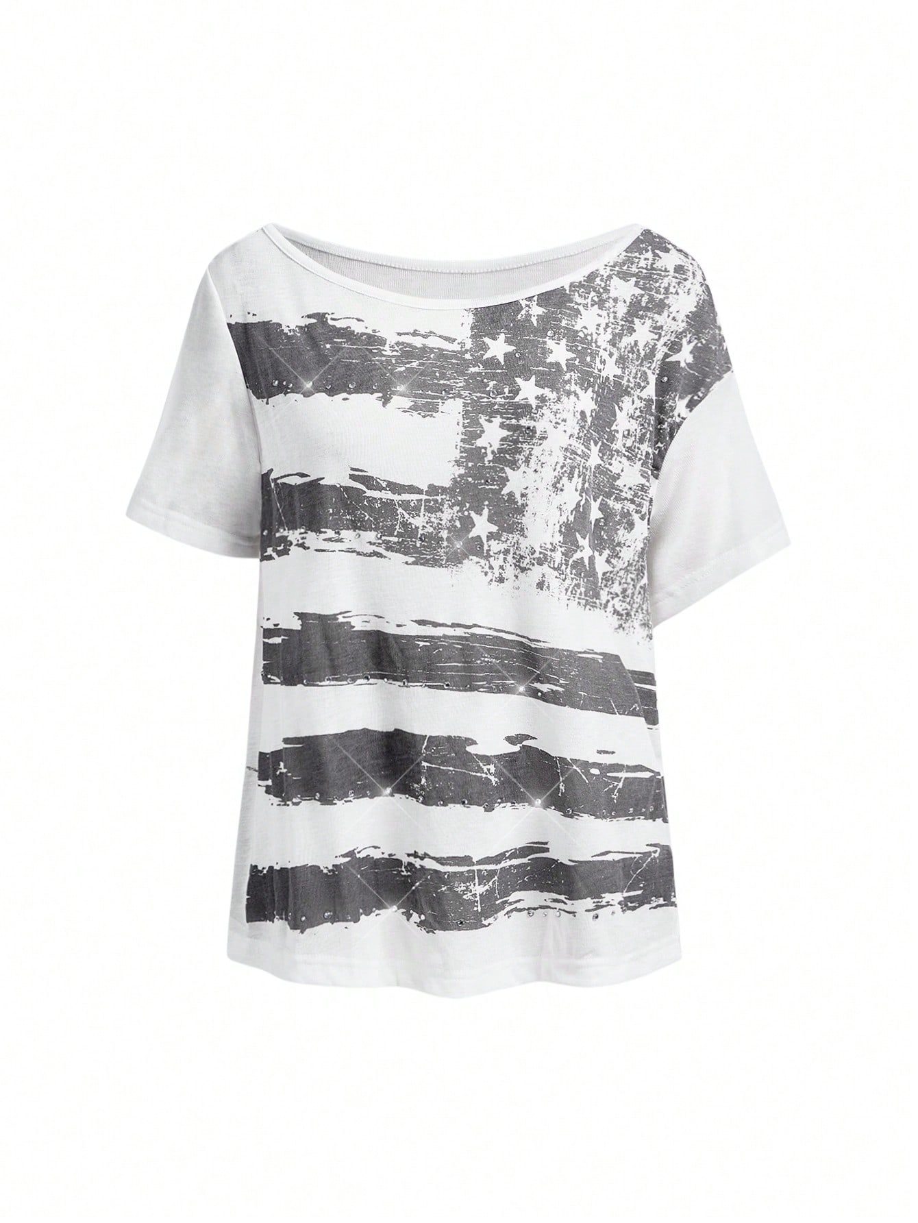 Grunge Punk Spring/SummergraphicwhiteY2K Vintage Distressed American Flag Graphic Oversized Short Sleeve T-Shirt