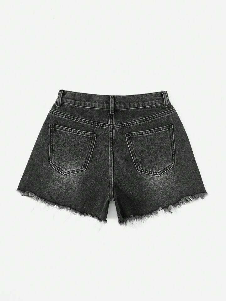 Grunge Punk Star Patched Raw Hem Denim Shorts