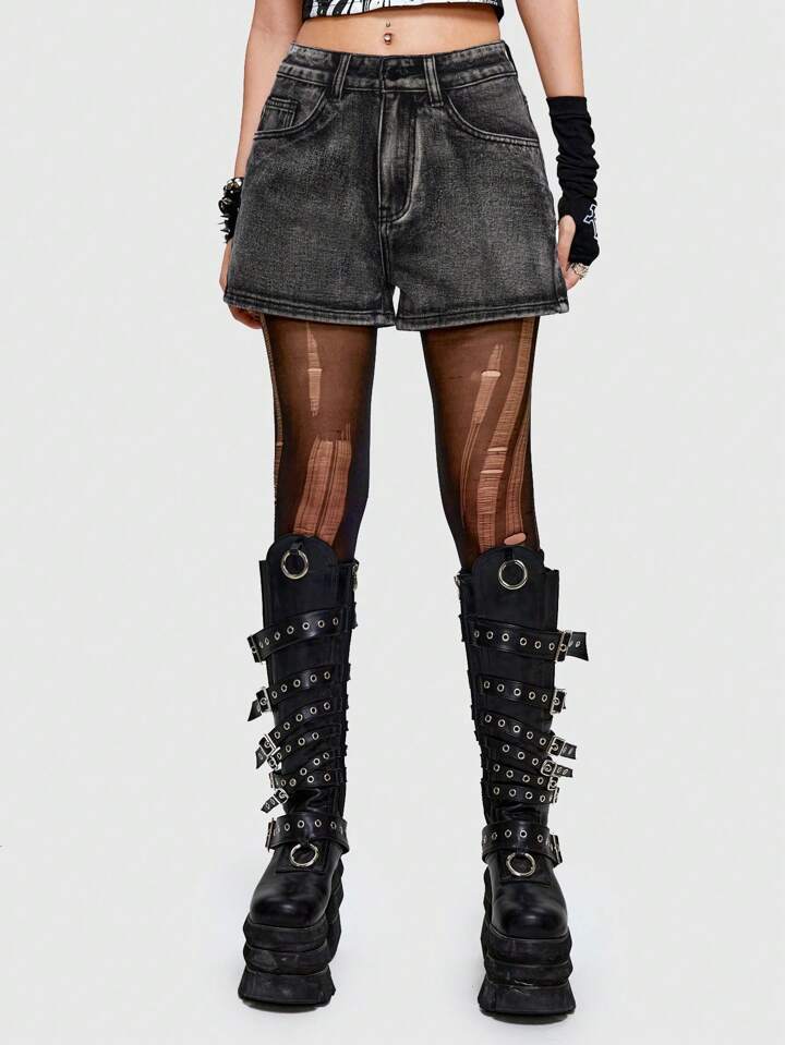 Grunge Punk Star Pattern Ripped Denim Shorts