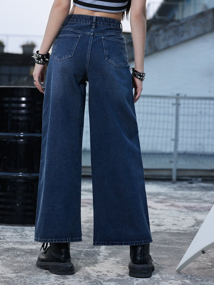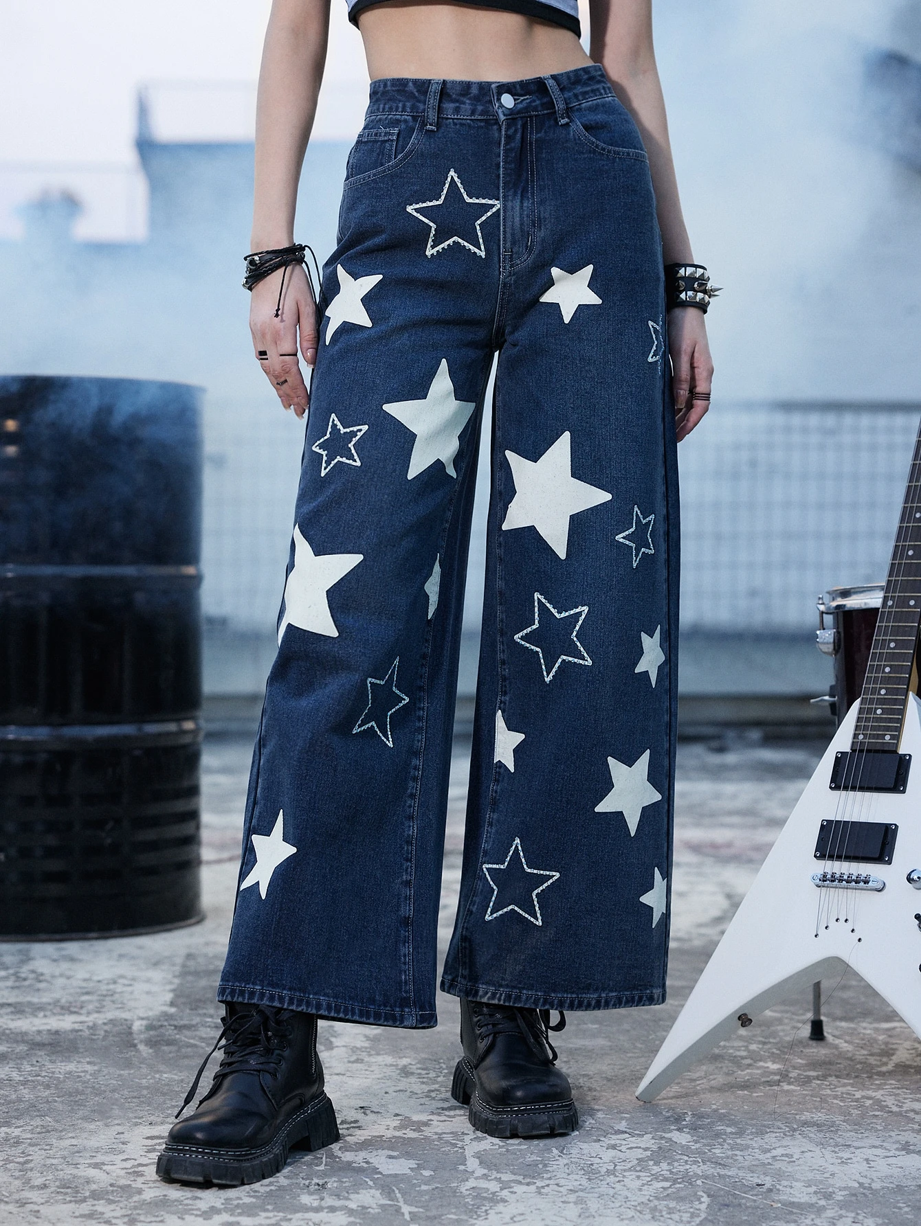 Grunge Punk Star Print Wide Leg Jeans