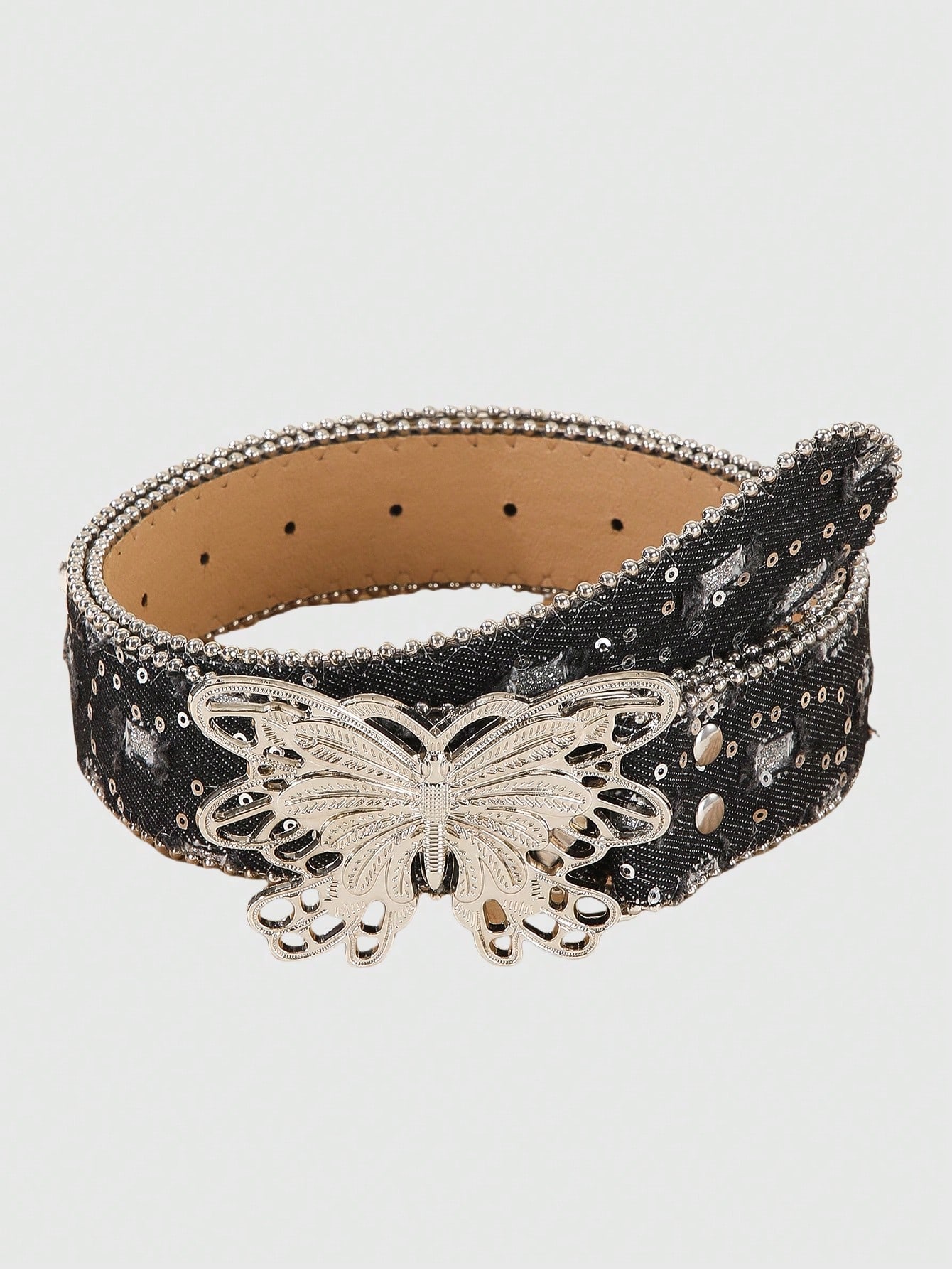 Grunge Punk Stylish Fashion Butterfly Beaded & Sequin Embellished Belt
