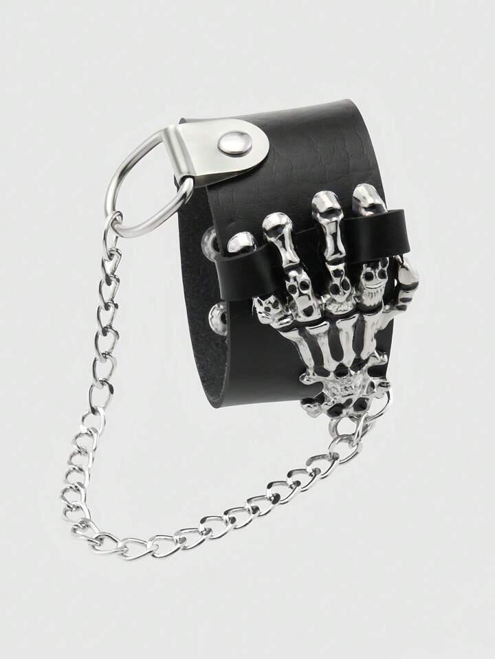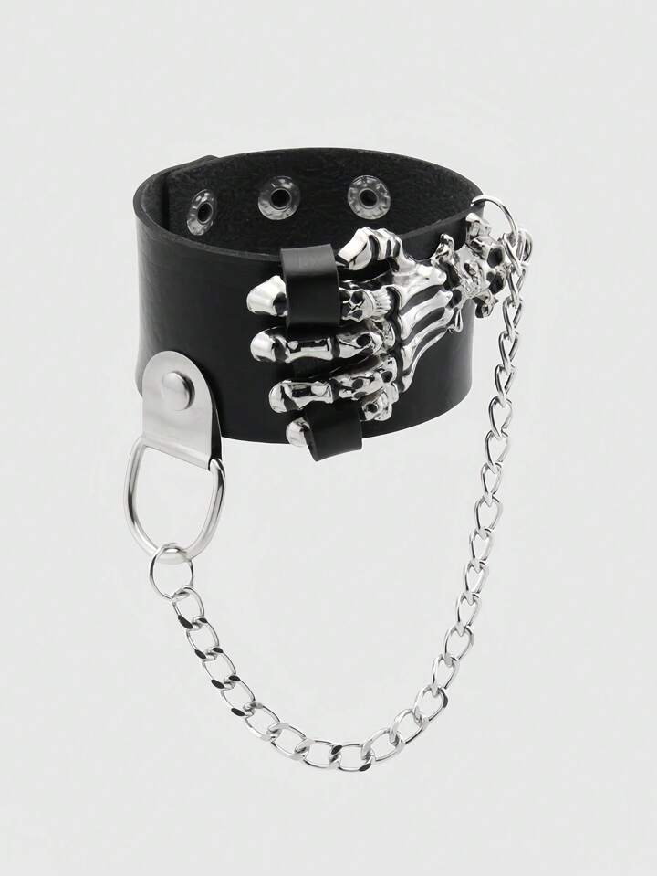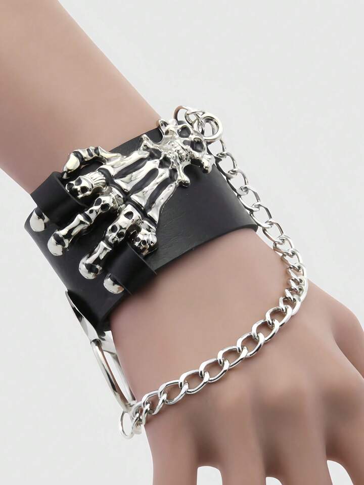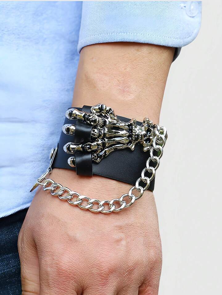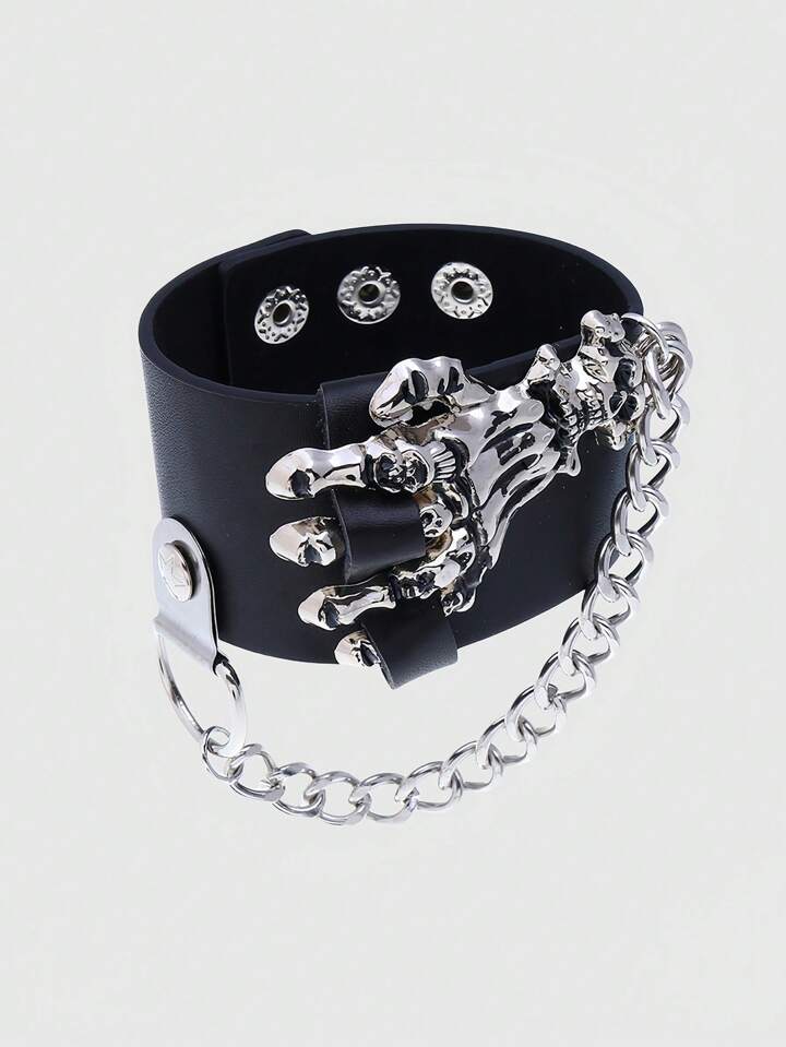 Grunge Punk Stylish Vintage Skull & Claw Design Leather Bracelet/Bangle, Punk Rock Statement Accessory
