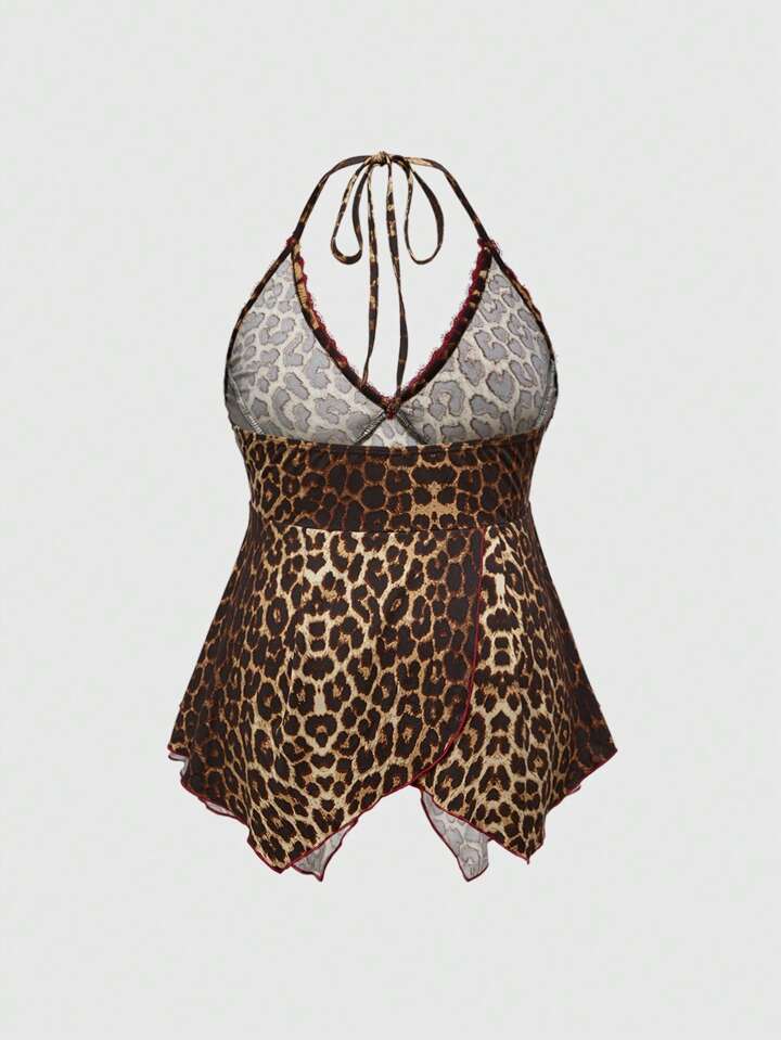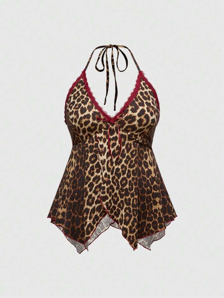 Grunge Punk Summer Tops Y2K Vintage V-Neck Lace Patchwork Asymmetric Hem Leopard Print Plus Size Women Camisole