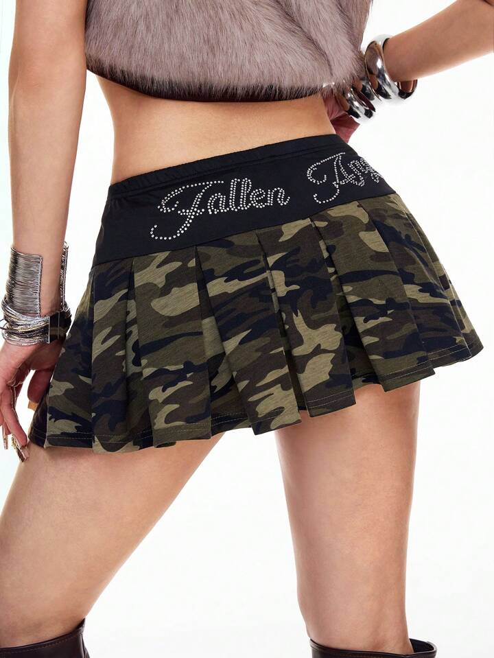 Grunge Punk Summer Women's Vintage Sexy Multi-Layer Cake Skirt, Camouflage Grommet Lace-Up Bow Knitted Super Short Low Waist Pleated Skirt