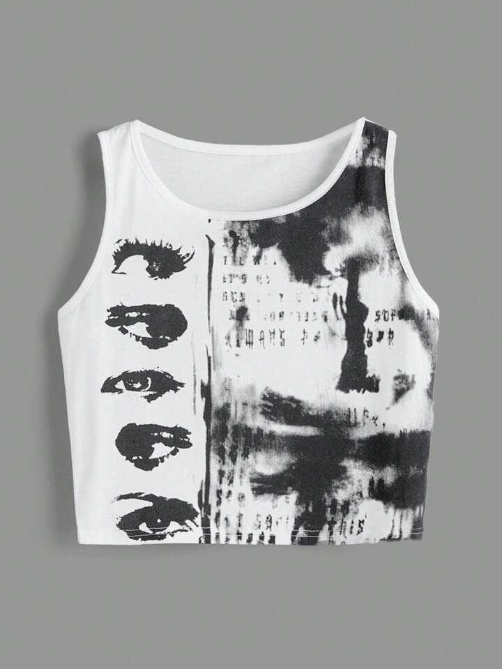 Grunge Punk Tie Dye Figure Graphic Tank Top