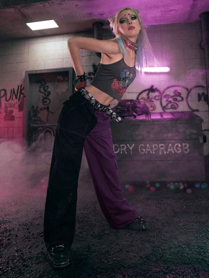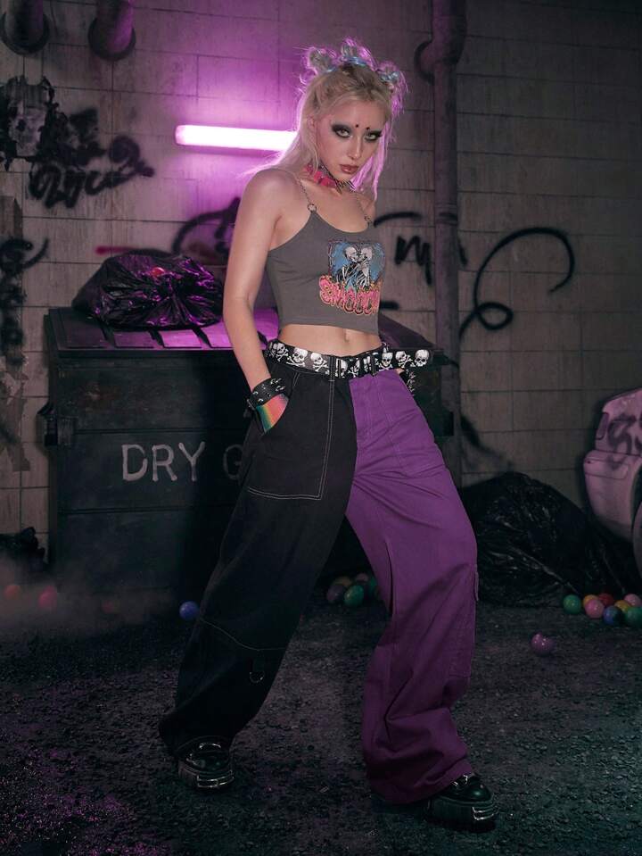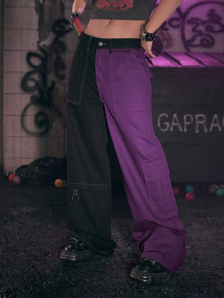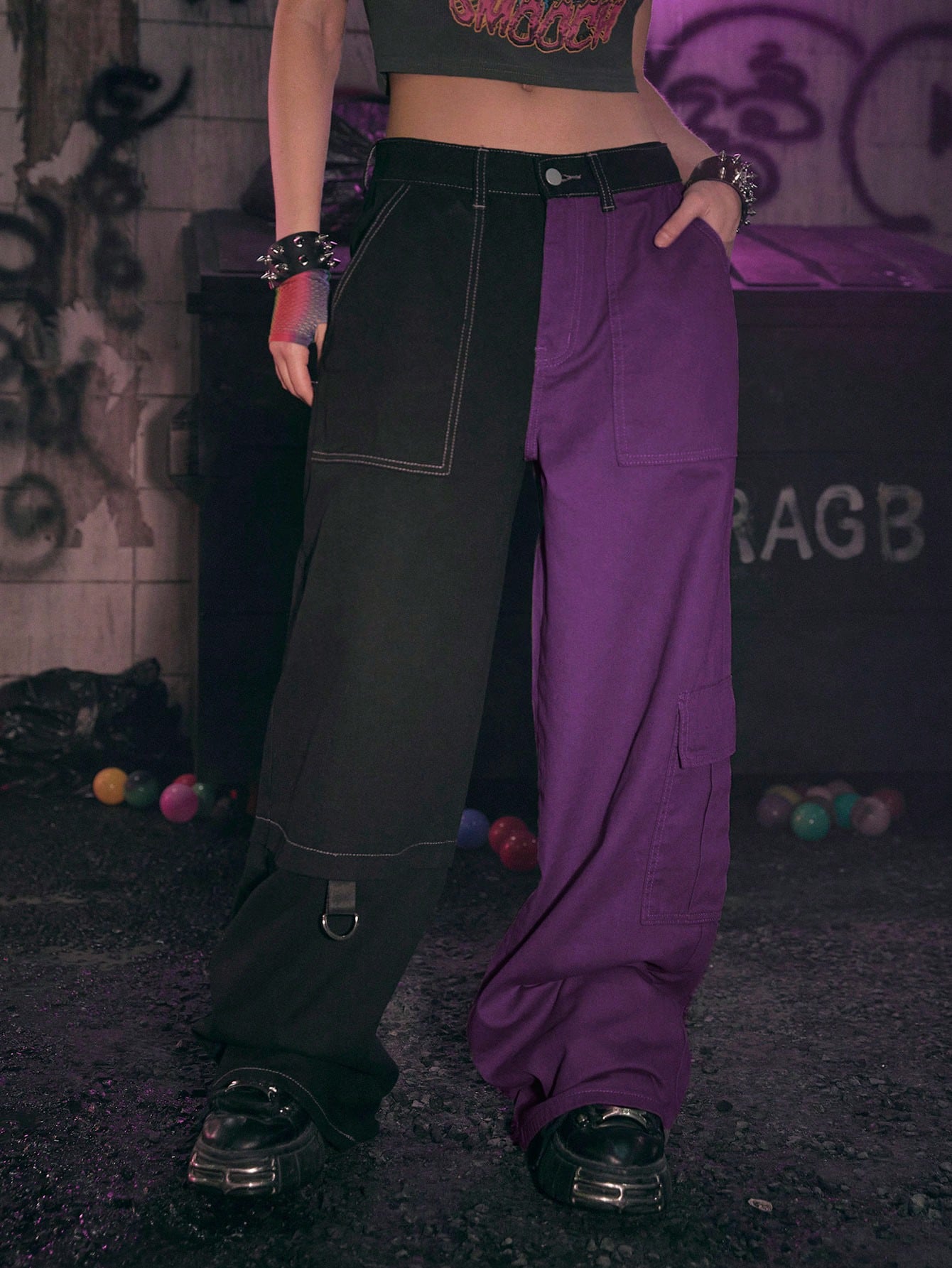 Grunge Punk Two Tone Flap Pocket Side Cargo Jeans
