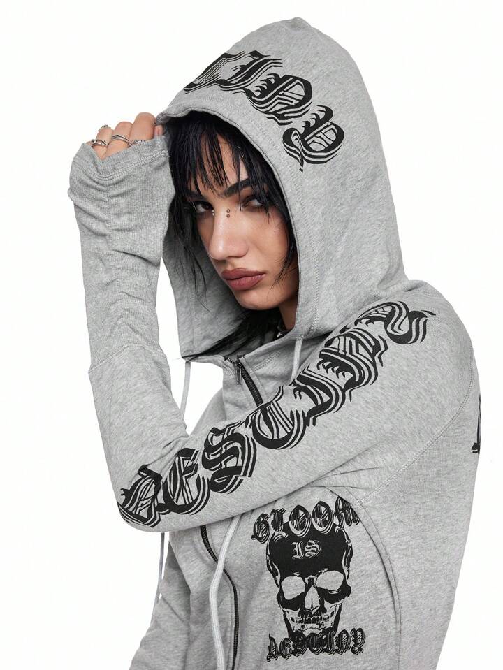 Grunge Punk Vintage Y2K Gyaru Punk Style Skeleton Slogan Printed Fitted Sweatshirt For Women