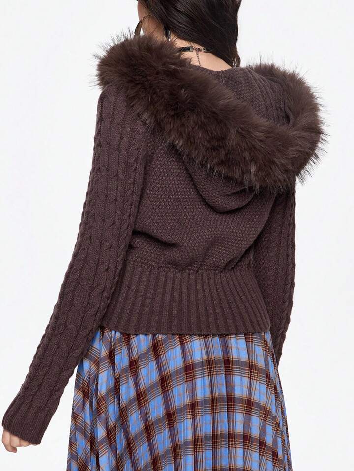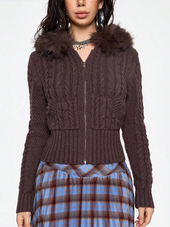 Grunge Punk Vintage Y2K Style Frayed Hem Fitted Cardigan With Hood For Women