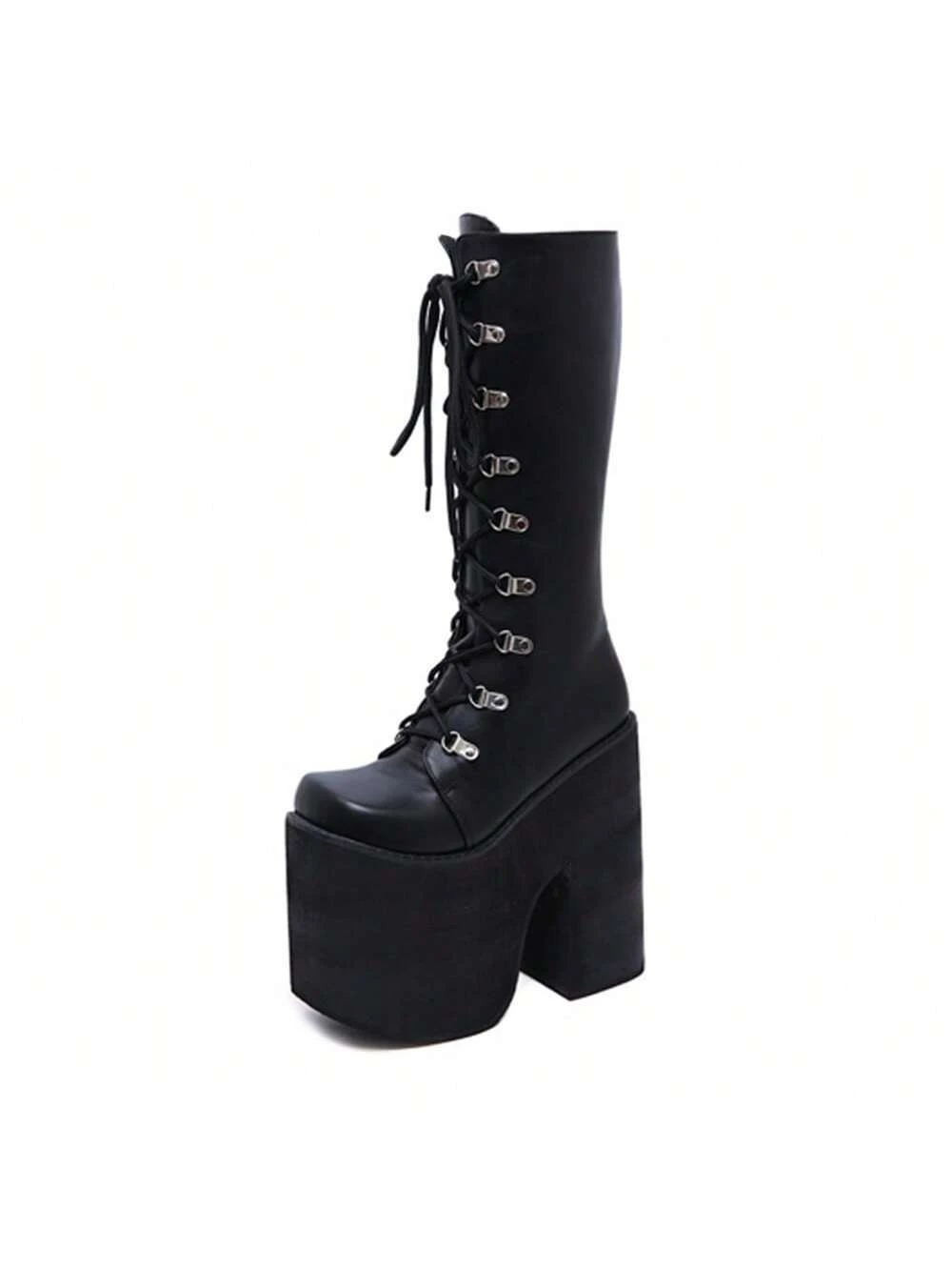 Grunge Punk Winter Thermal Lined Tall Boots For Women, European And American Style, Stage Show High Platform Thick Heel Knee-High Boots