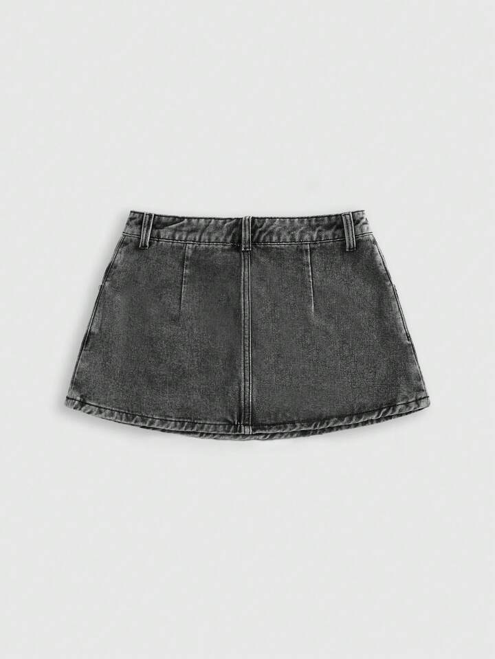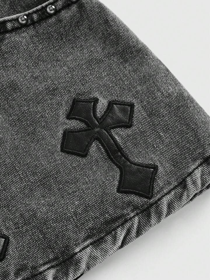 Grunge Punk Women Embroidered Cross Denim Mini Skirt