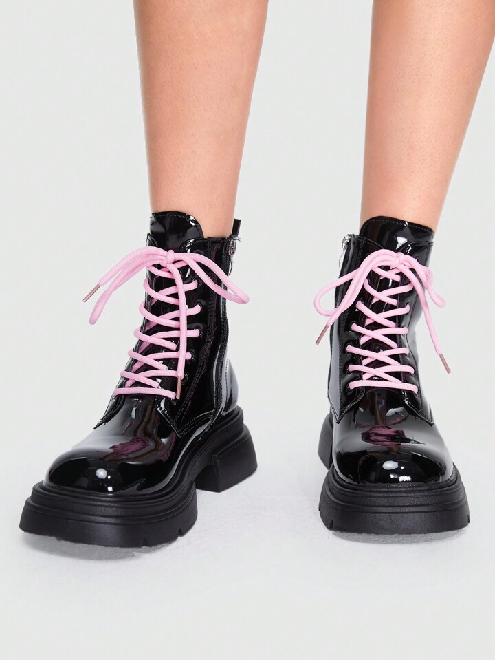 Grunge Punk Women Minimalist Lace-up Front Combat Boots, Punk Outdoor Fashion Boots