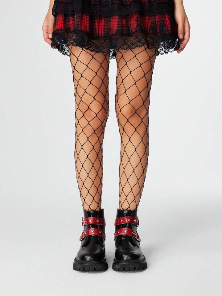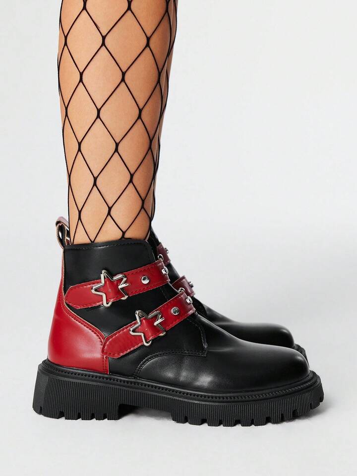 Grunge Punk Women Punk Style Ankle Boots, Colorblock Round Toe Chunky Platform 5cm Heel, Metallic Studs, Double Hook And Loop Strap, PU Leather, Daily & Casual