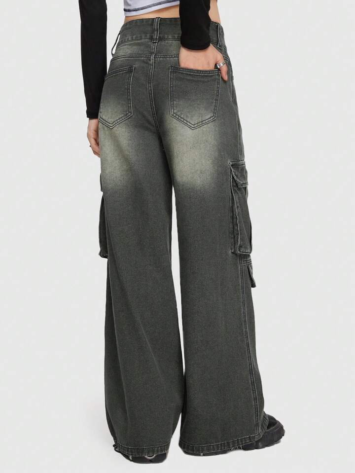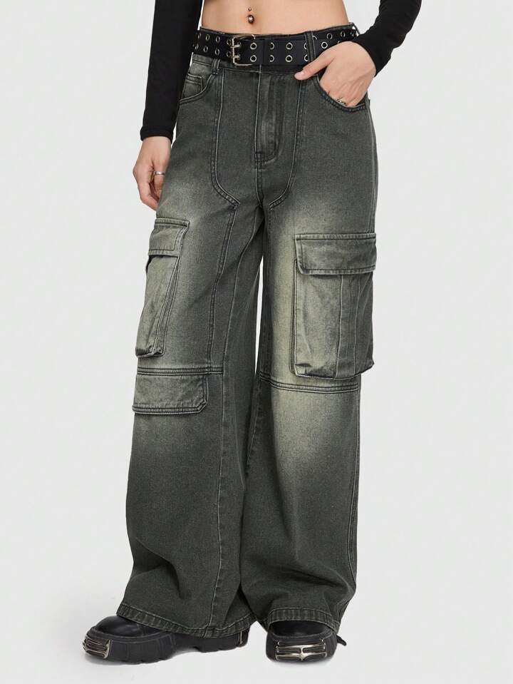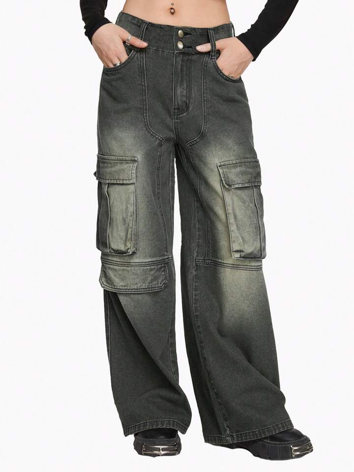 Grunge Punk Women'S Loose Fit Cargo Style Denim Jeans