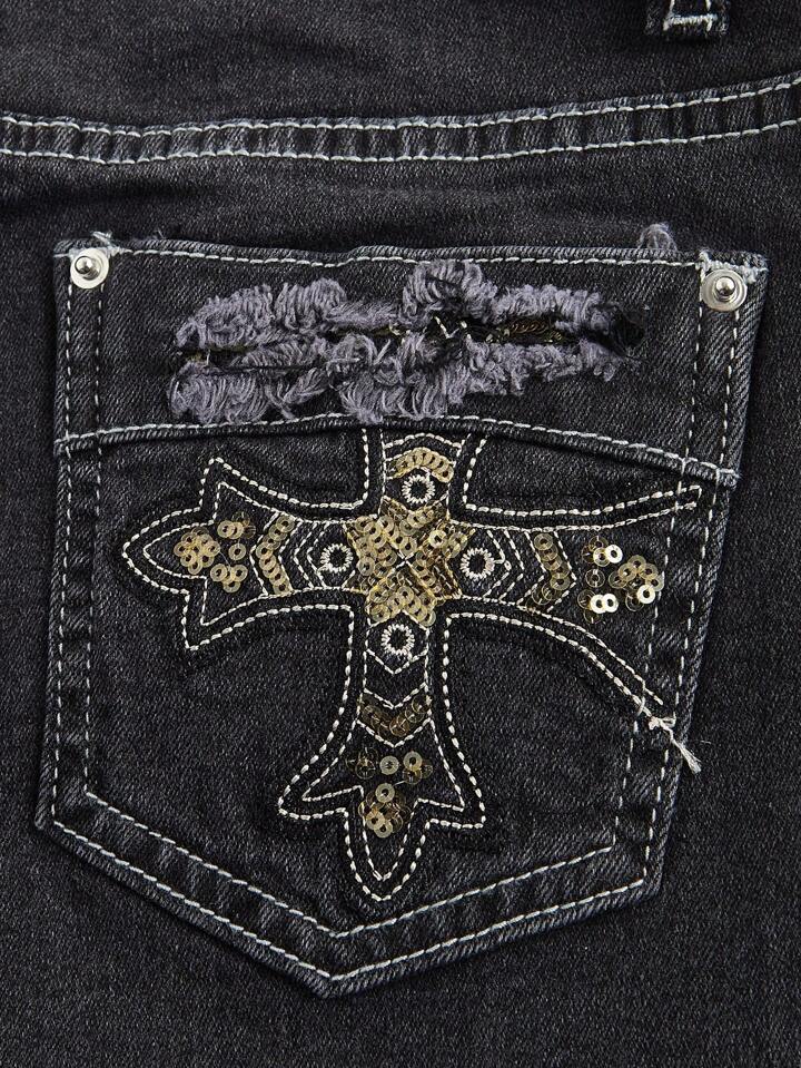 Grunge Punk Women Summer Shiny Cross Embroidered Denim Shorts, School