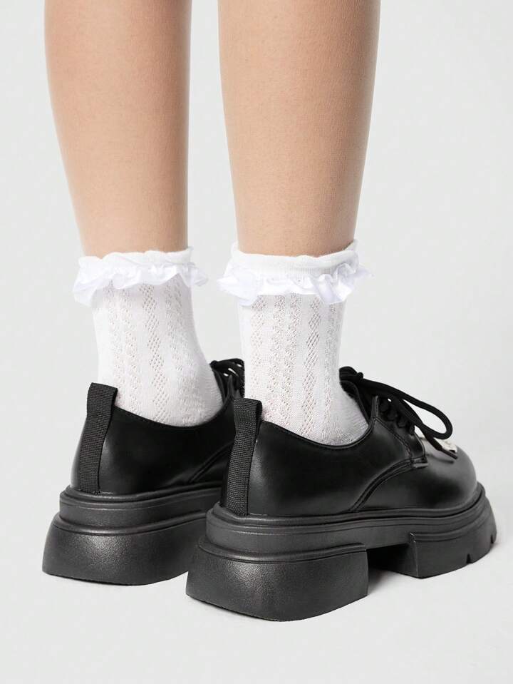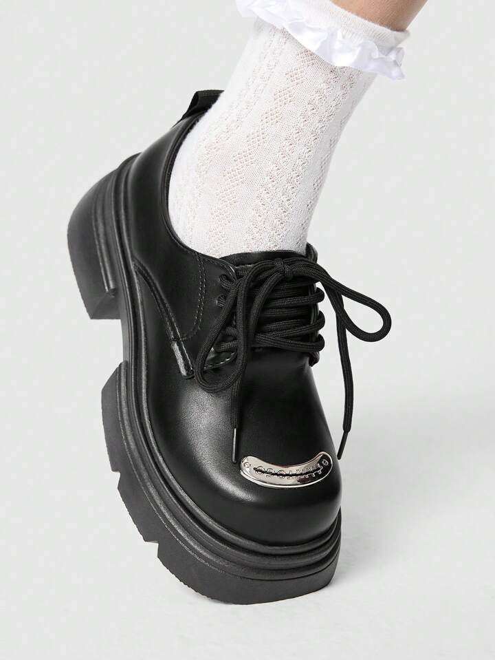 Grunge Punk Women's Black Mary Jane Shoes, Rockabilly Loafers With Metal Buckle, Gothic Punk Style, Office Wear Platform Wedge Shoes