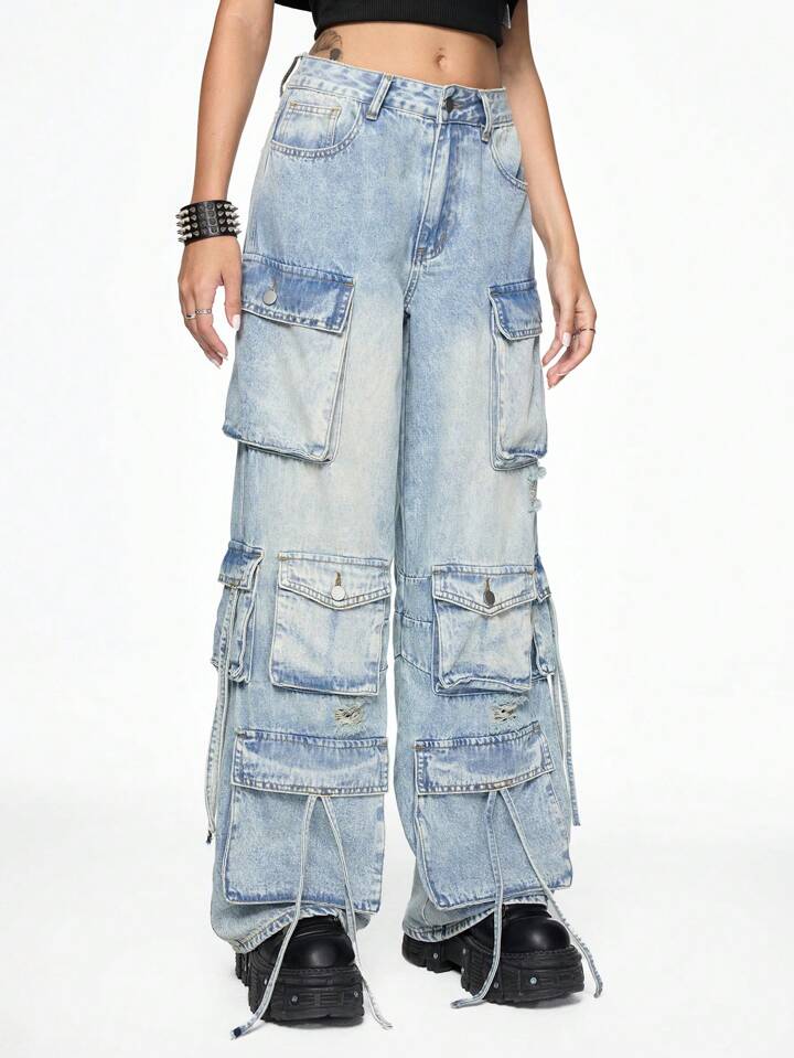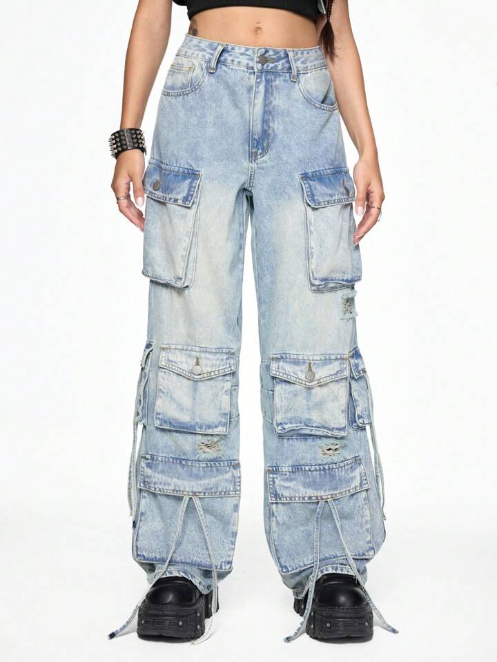 Grunge Punk Women's Casual Denim Jeans, Simple & Fashionable For Everyday Wear,Summer , Summer Outfits ,Summer Clothes,Streetwear Women's Concert Costumes, Rave Costumes, Carnival Costumes, Country Concert Costumes