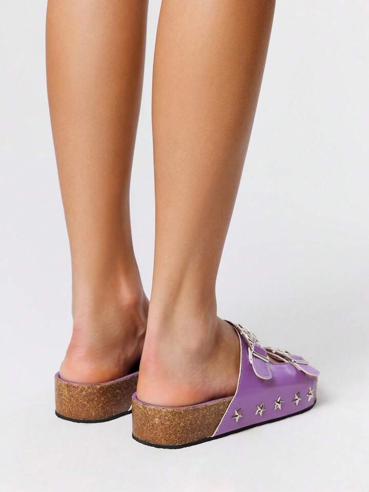 Grunge Punk Women's Dark Punk Rock Style Roman Beach Sandals, Strap Slip-On Holiday Slippers, Star Peep-Toe Wedge Platform Sandals