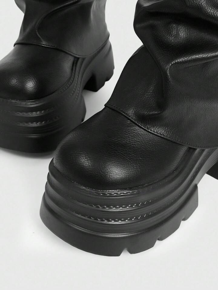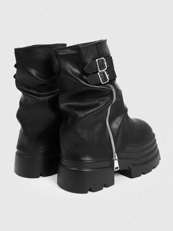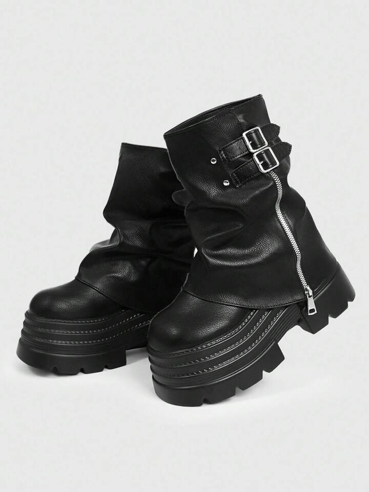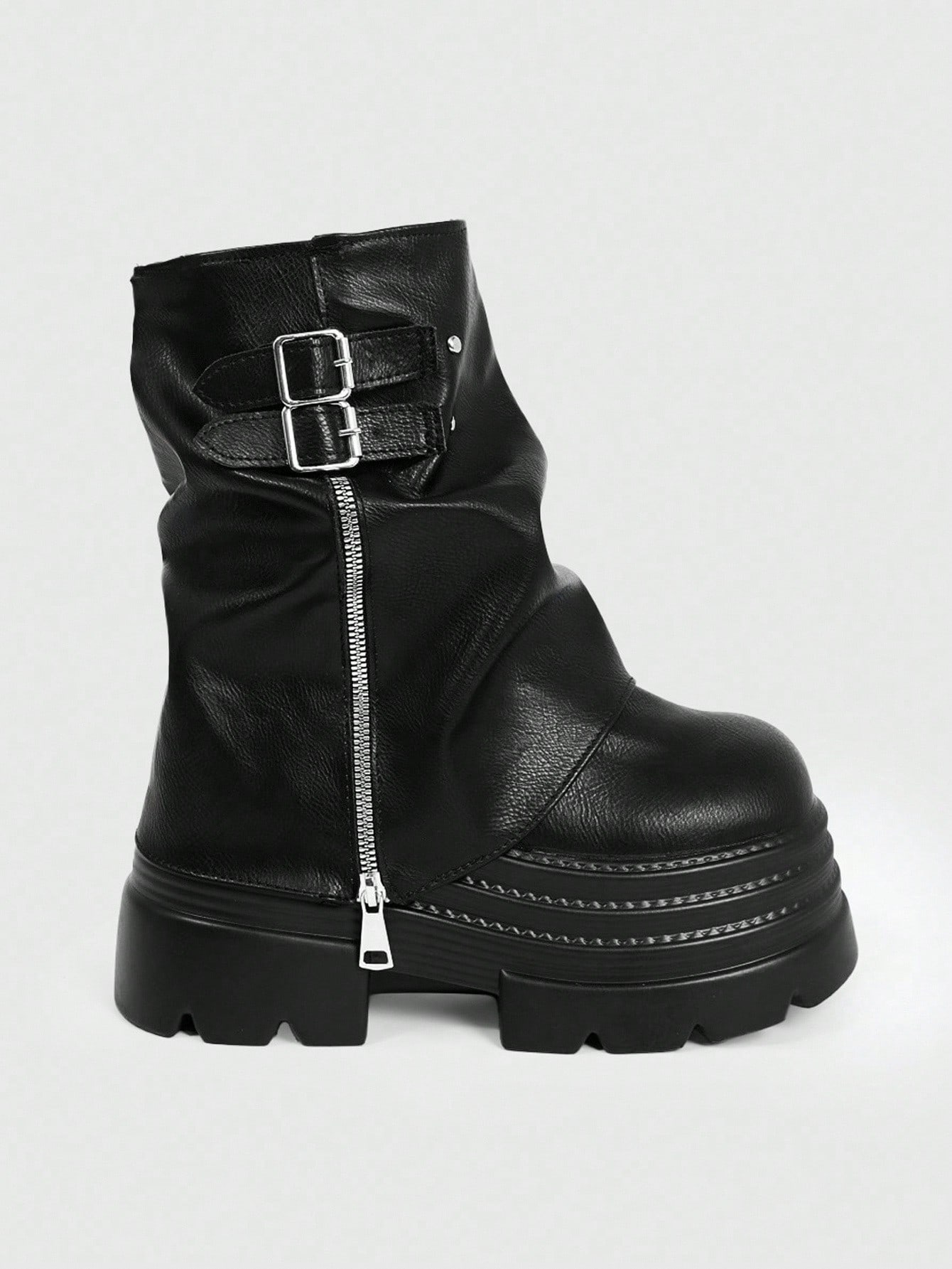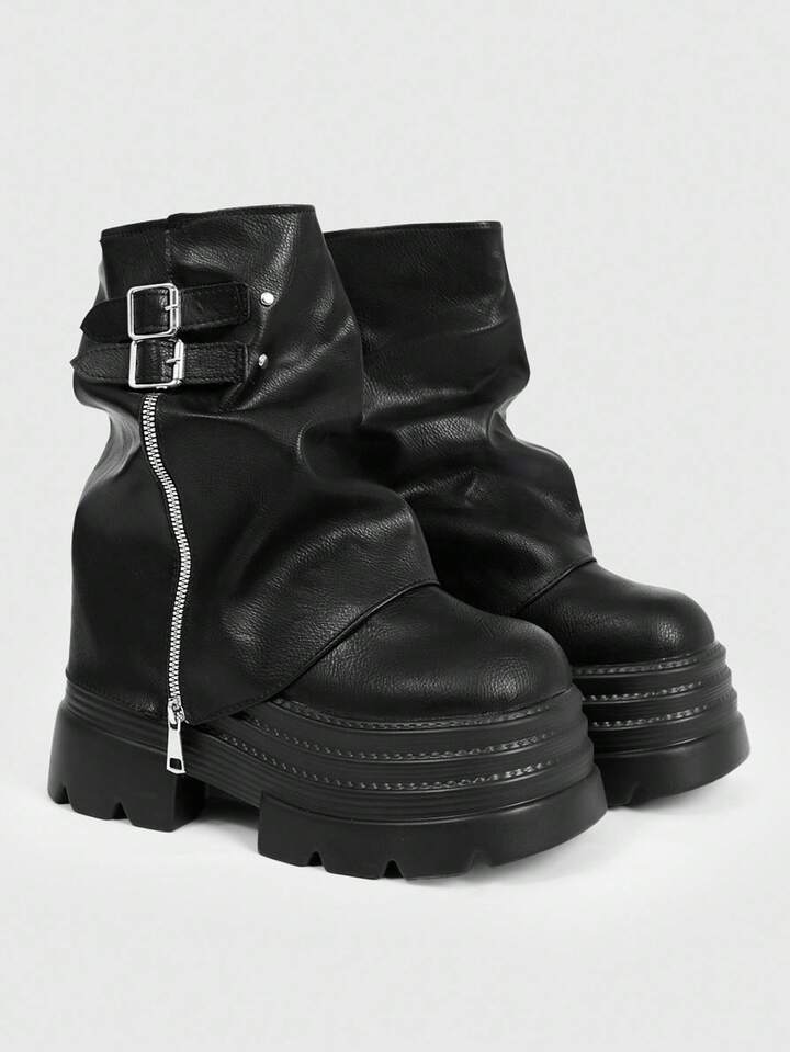 Grunge Punk Women's Dark Rock Punk Goth Boots, Pointed Toe Ankle Boots, Wedge Heel Thick Sole Buckle Strap Riding Boots, Ankle Boots And Short Boots