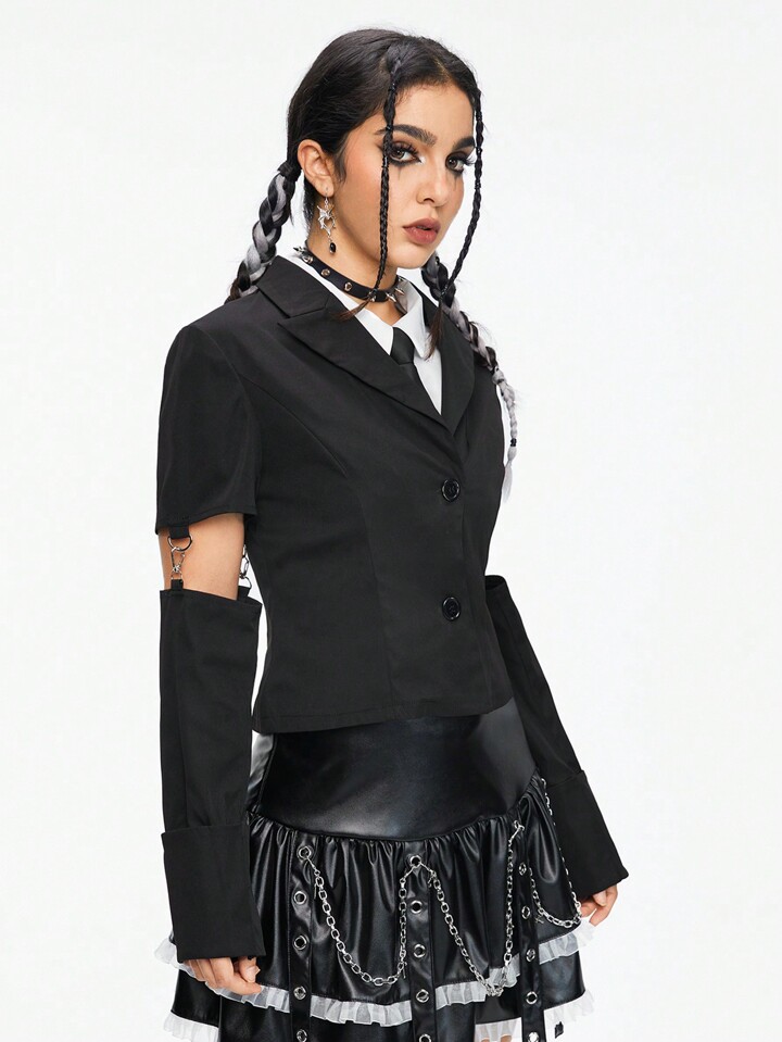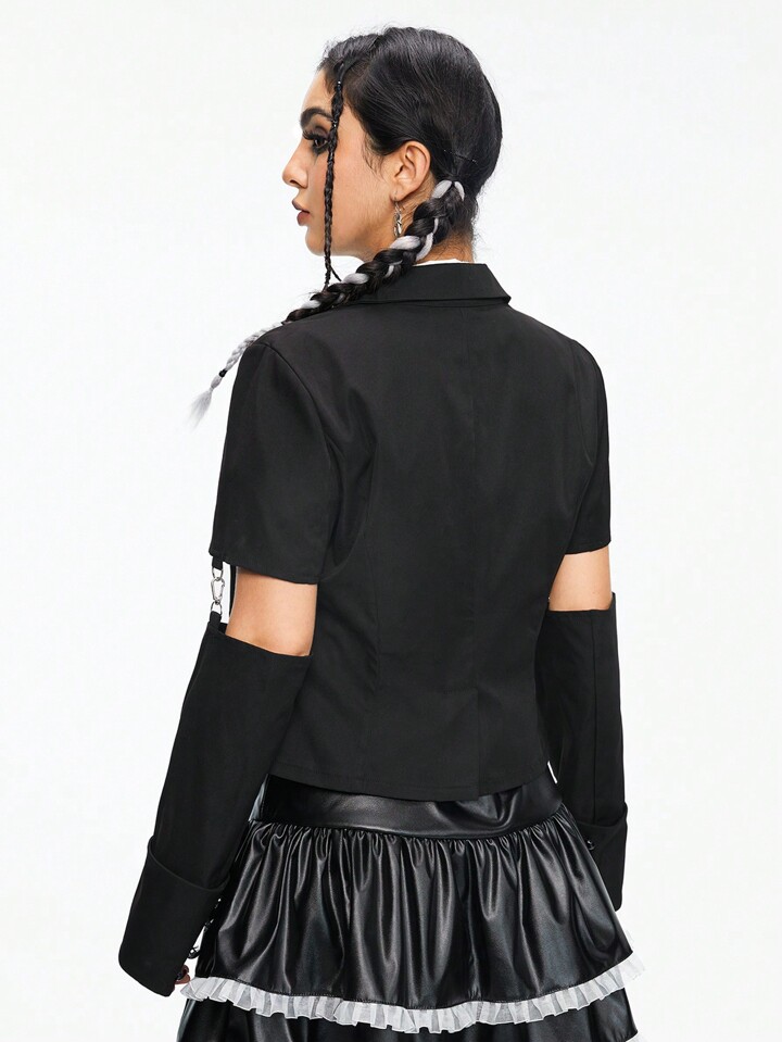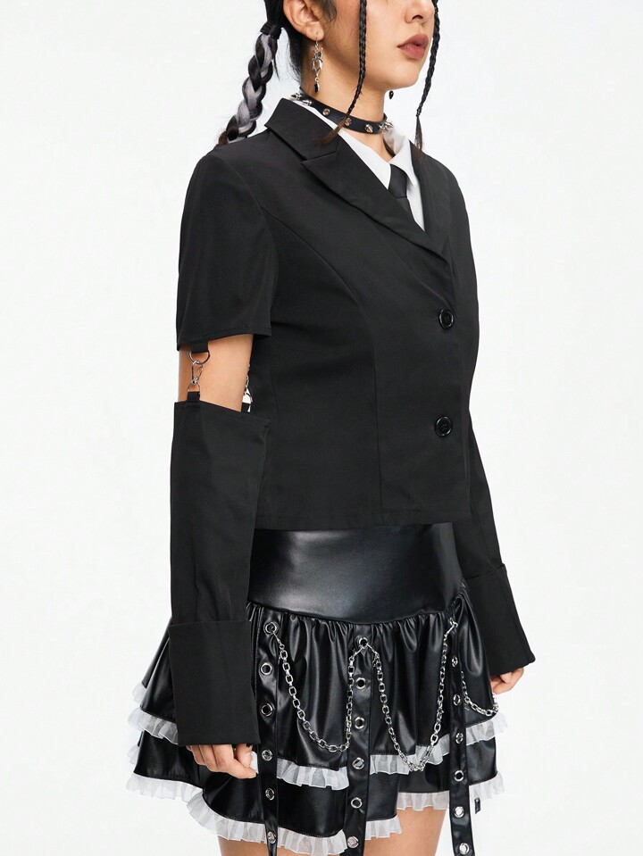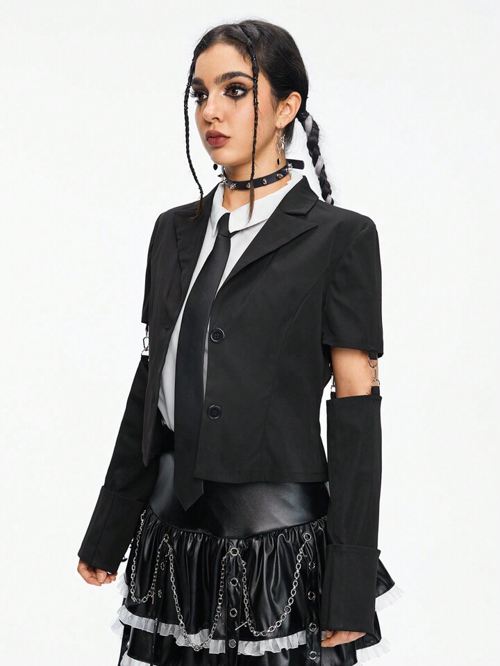Grunge Punk Women's Deconstructed Sleeve Patchwork Metallic Blazer