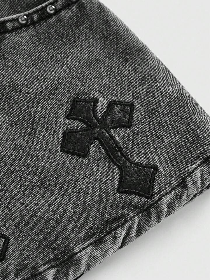 Grunge Punk Women's Embroidered Cross Denim Mini Skirt