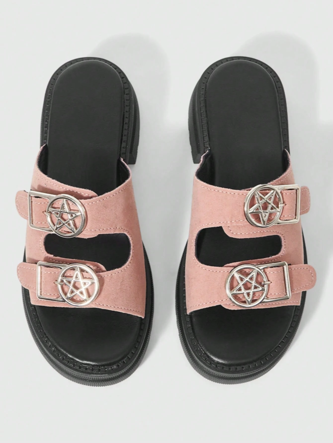 Grunge Punk Women's European & American Punk Rock Style Strap Sandals With Metal Buckle, Open Toe Roman Beach Sandals, Gothic Platform Wedge Sandals For Summer Vacation, Halloween