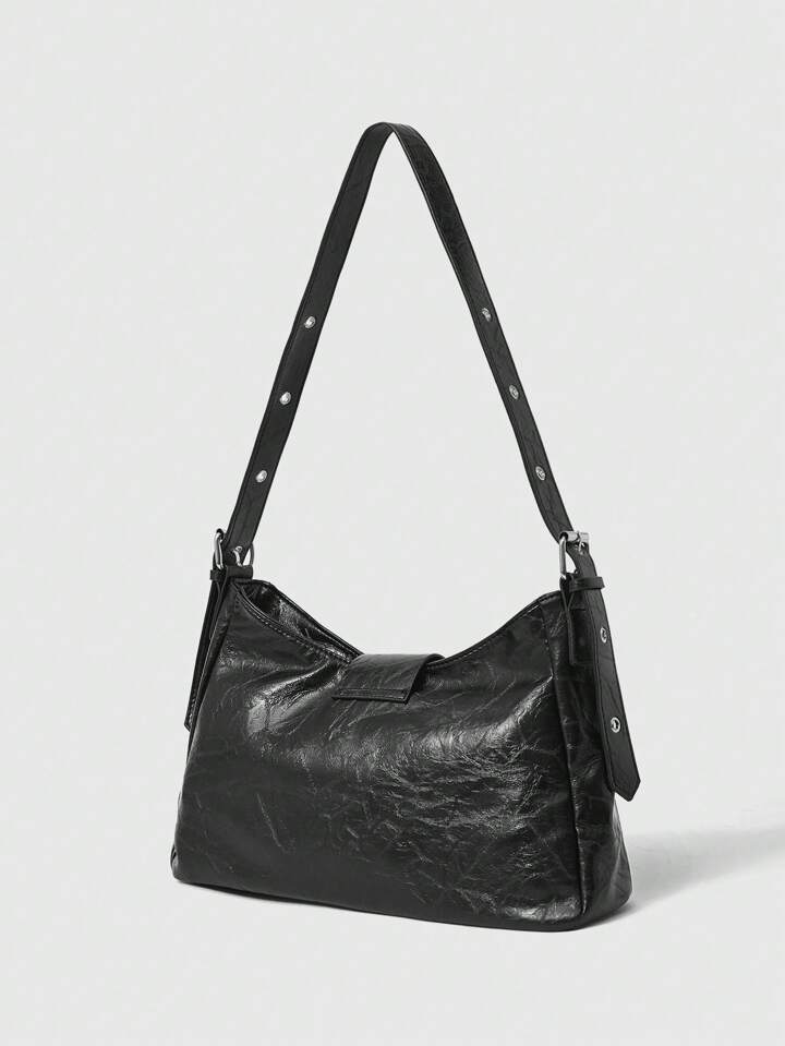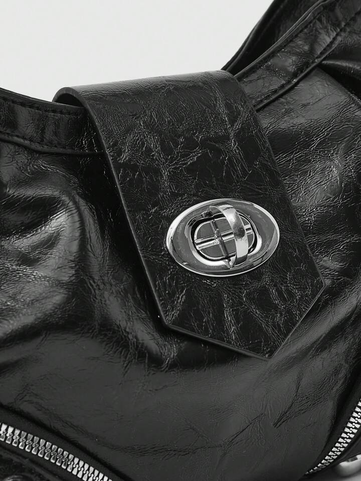 Grunge Punk Women's Fashion Black Zipper Design Shoulder Bag