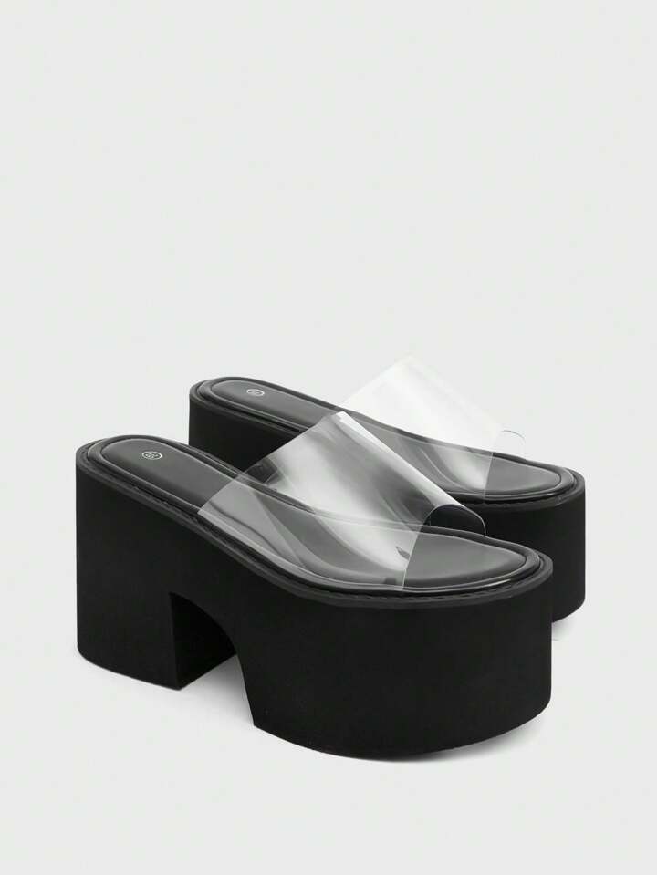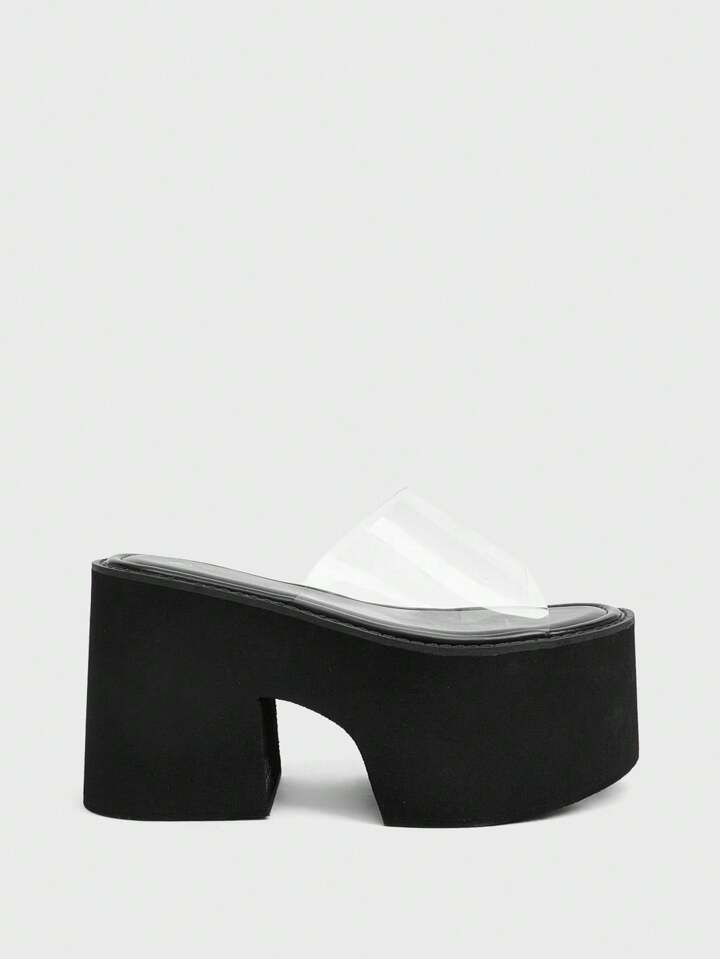 Grunge Punk Women's Fashion Thick Platform Chunky Heel Sandals, 4.5 Inch Wedge, PVC Transparent Strap Slip-On Mules, Comfortable Casual Outdoor & Indoor Minimalist Shoes