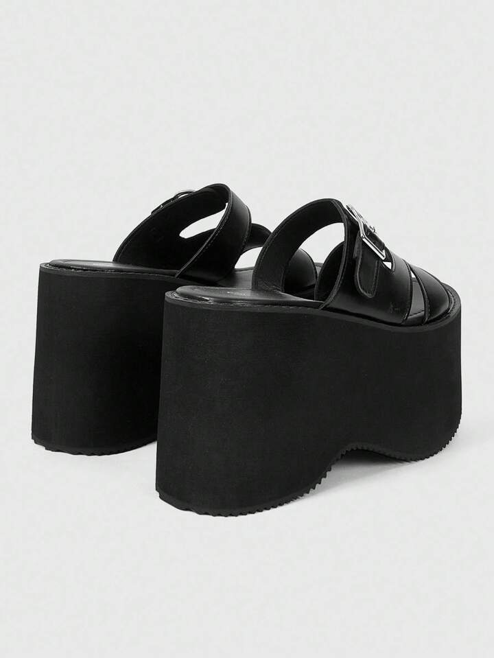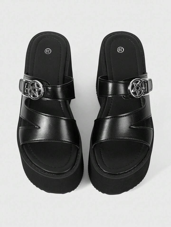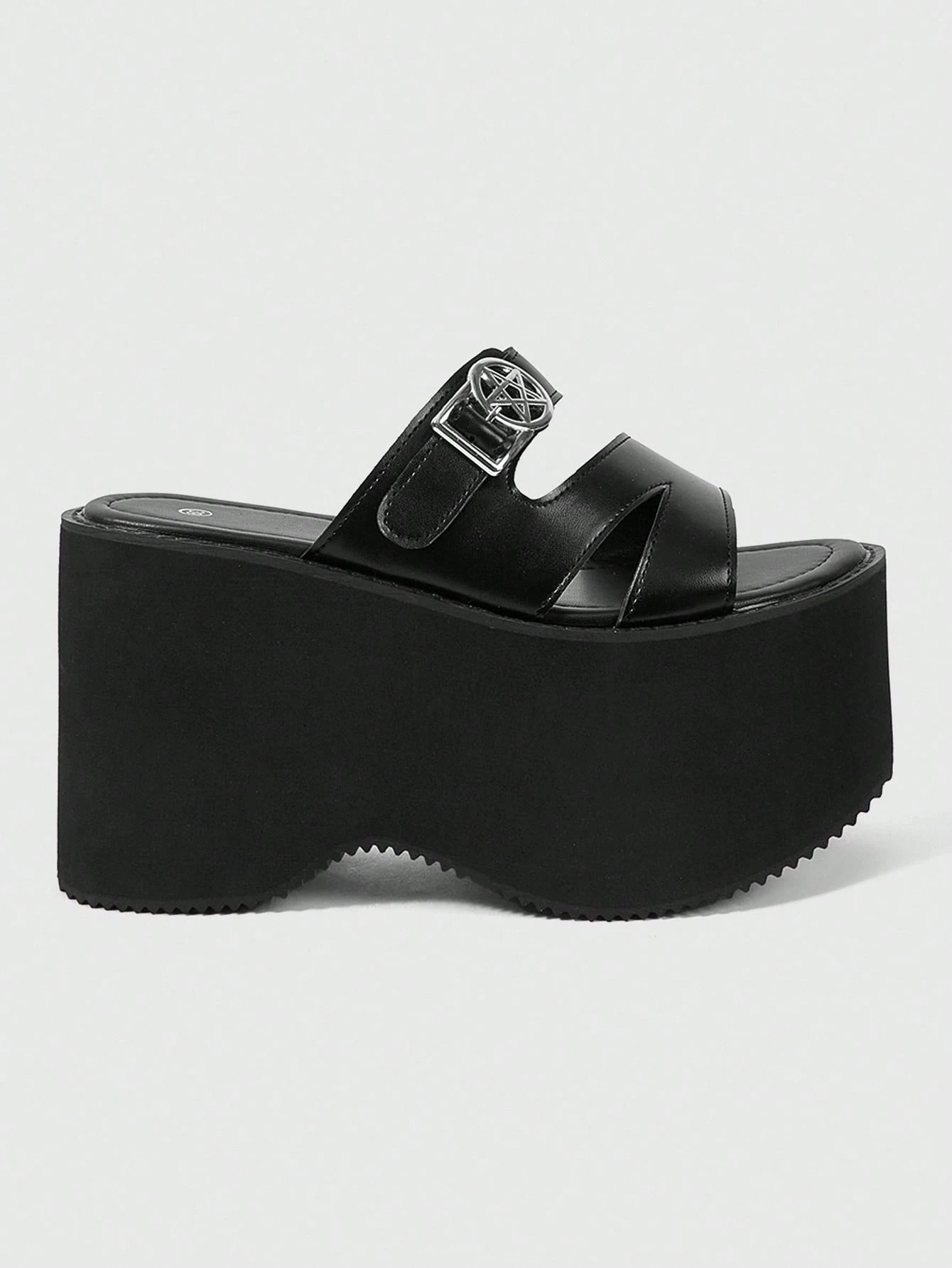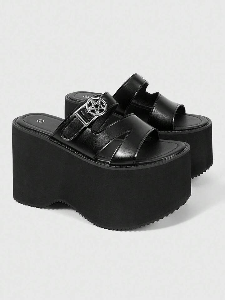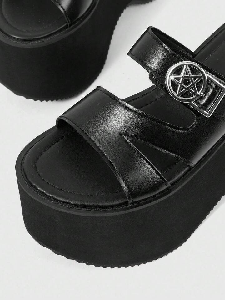 Grunge Punk Women's Fashion Thick Sole Sandals - Summer Punk Style, Comfortable Breathable Peep Toe Casual Women Shoes - Punk Thick Heel Student Holiday Party Slip-On Sandals