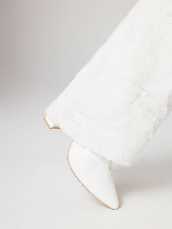 Grunge Punk Women's High Heel Boots, Versatile Elegant Pointed Toe Fashion PU Thick Heel Boots, Autumn/Winter